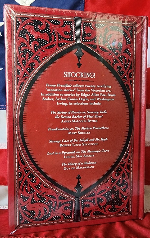 Various Authors Penny Dreadfuls: Sensational Tales of Terror (includes original 1918 edition of Frankenstein) Special Bonded Leather Hardcover Collectible Edition GIFT EDITION BRAND NEW and SEALED!! 100% Positive Feedback Seller - Bid without worries!! Item Description This book is brand new and sealed , never read or used in any way, however there are some flaws, see pictures Beautiful gilt lettering on the cover and spine Silver gilt page edges Satin ribbon book marker attached Bonded Leather bound hardback boards Body-snatching! Premature burial! Cannibalism! The original Victorian-era penny dreadfuls entertained the masses with shocks, thrills, and lurid horrors. This terror-packed anthology includes two novels— The String of Pearls , which immortalized Sweeney Todd, the demon-barber of Fleet Street; and the original 1918 edition of Frankenstein —as well as tales by Poe, Robert Louis Stevenson, Stoker, Alcott, and Conan Doyle. Shipping FREE Shipping within the continental USA will be via USPS Media Mail. Priority Mail is available for an extra $10 shipping charge. If you are from an American location that is not part of the continental USA , you will be required to pay for Priority Mail. I have set these locations as Exclusions, but I will be happy to remove the exclusions upon request and agreement to pay for the $10 for Priority Shipping. International Shipping will be via eBay Global Shipping Program. I use Media Mail to send to the Global Shipping center in Kentucky, however, if you wish for it to arrive at the center more quickly, you can add $10 to have it shipped there Priority. All of my books are shipped in sturdy, safe and secure boxes. Return Policy: Returned or exchanged items must be in original condition to qualify for a refund, and must be returned within 30 days from the purchase date. Customers are responsible for all return or exchange shipping charges. Once the returned item is received back to me and I can verify condition, I will process the Refund.
