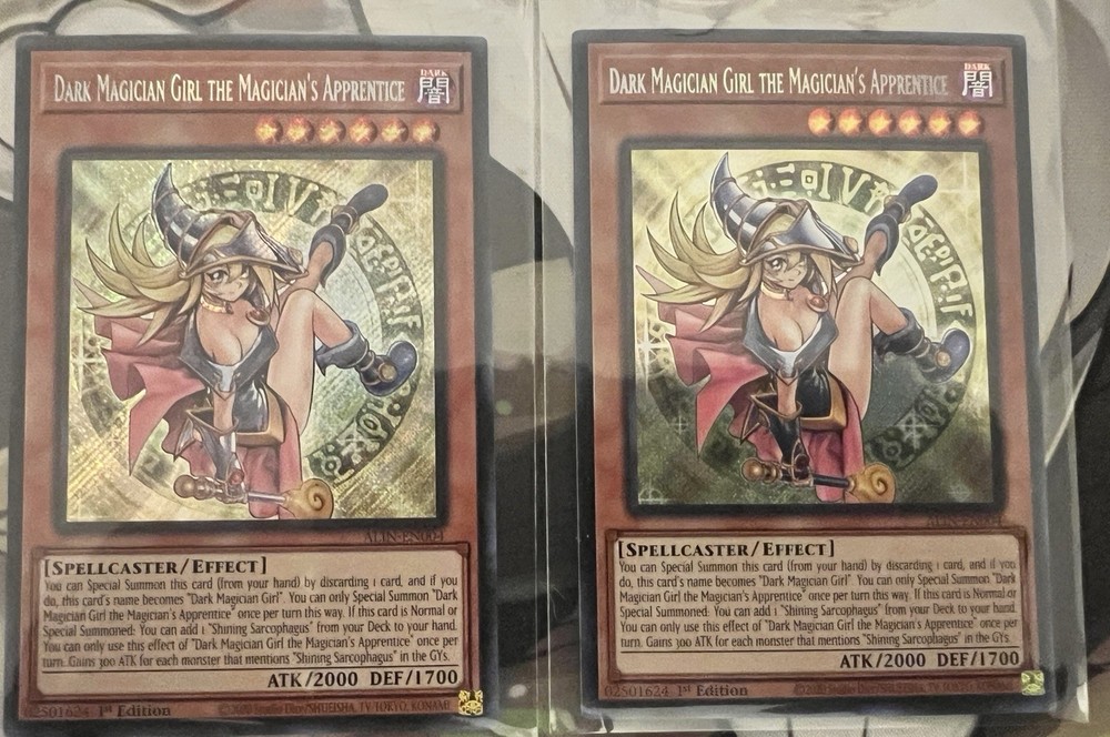 The product is a Secret Rare NM Dark Magician Girl card from the Yu-Gi-Oh! TCG's Alliance Insight set. Manufactured by Konami in Japan, this English language card is a 1st Edition Effect card with an Attack/Power of 2000 and a Defense/Toughness of 1700. It belongs to the Dark attribute and features a Spellcaster monster type, making it a valuable addition to any Yu-Gi-Oh! card collection.