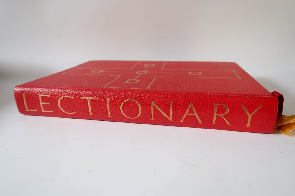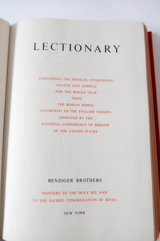 VINTAGE from 1965 LECTIONARY Leather Bound English Mass BENZIGER BROS Book is 7 1/2" x 10 3/4" x 1 1/4" Comes with hard paper box (on the last picture)...