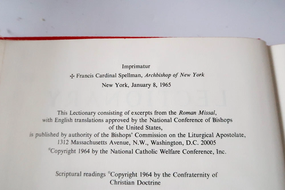 VINTAGE from 1965 LECTIONARY Leather Bound English Mass BENZIGER BROS Book is 7 1/2" x 10 3/4" x 1 1/4" Comes with hard paper box (on the last picture)