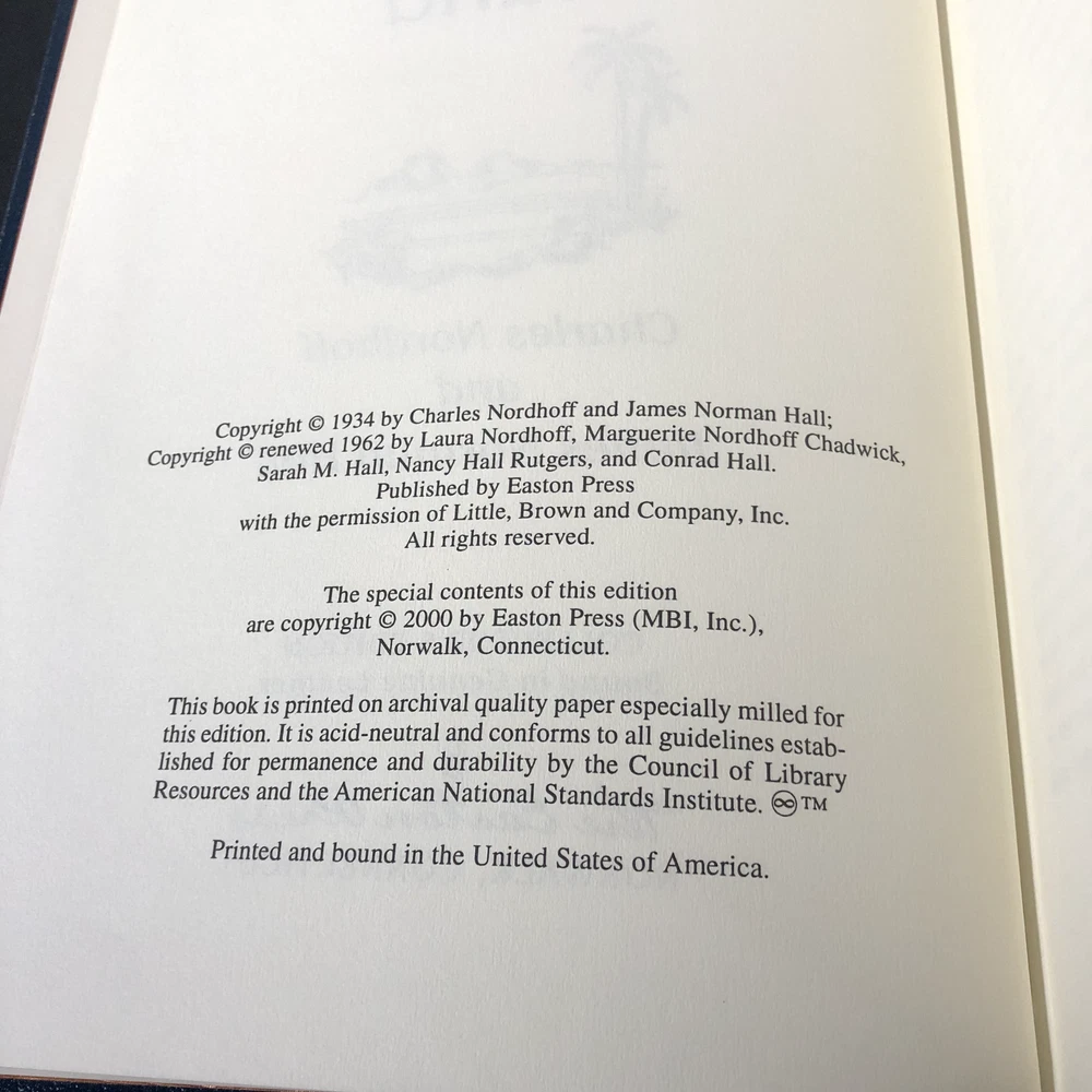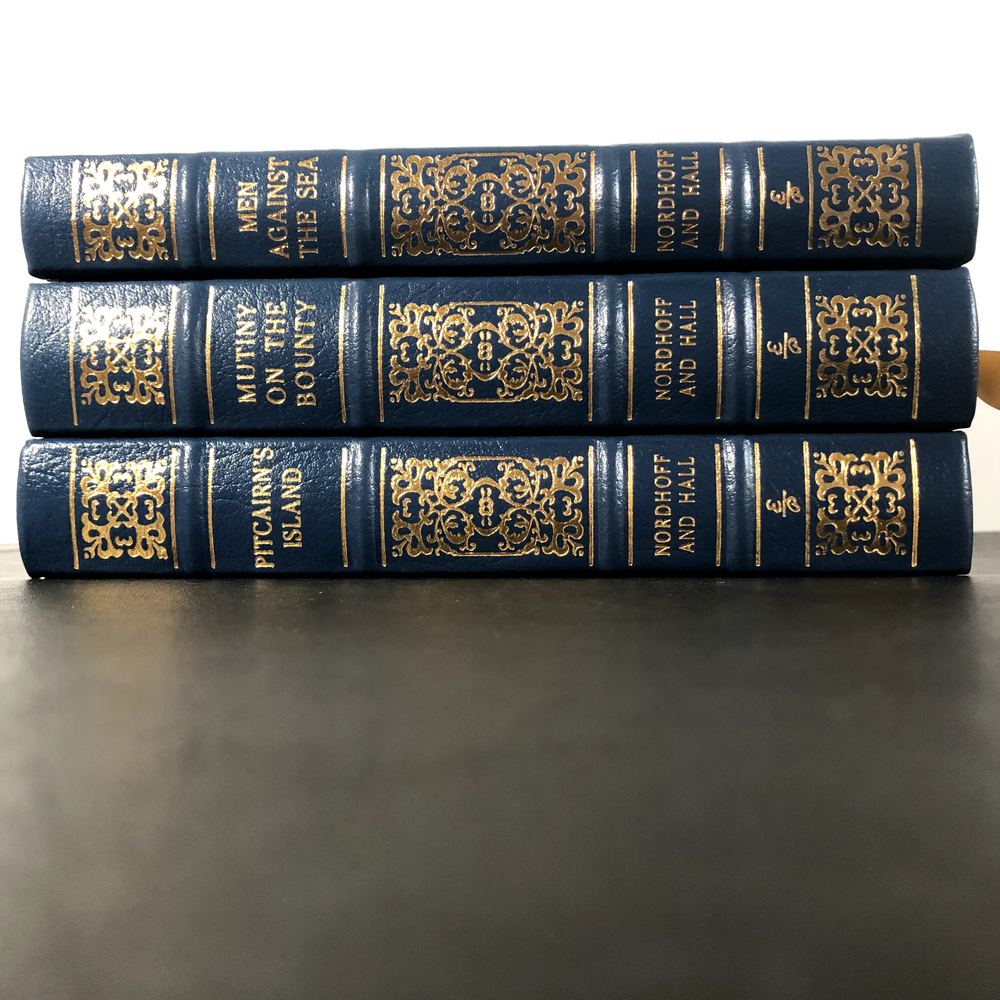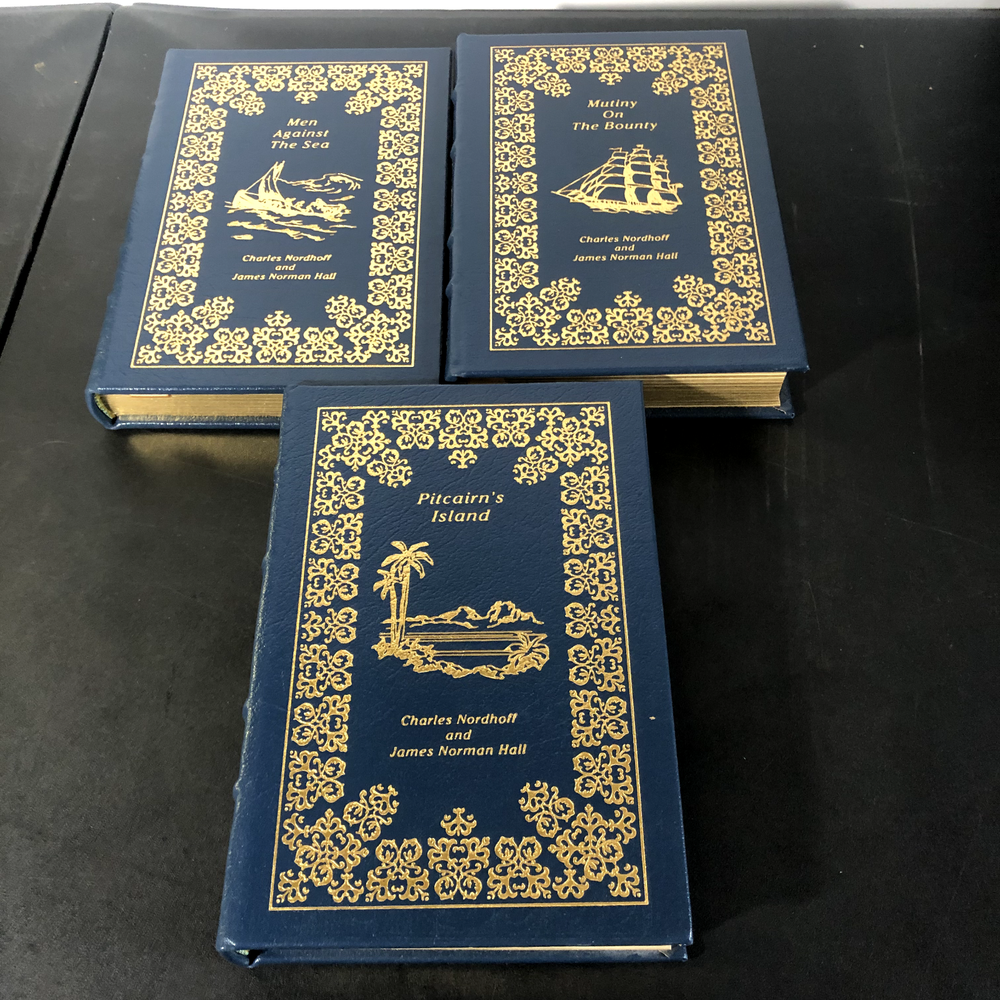 May have marks due to storage. Please see photos. This rare, luxury edition collector's set of the Nordhoff & Hall Bounty trilogy is a must-have for any book collector or fan of the classic Tarzan story. The set includes all three volumes bound in beautiful blue leather, with special attributes such as leather binding and a limited edition collector's shelf. The books are in their original language of English and were published by Easton Press, a renowned publisher of fine editions. The set is perfect for anyone interested in collecting rare and unique books, and would make a great addition to any collection.