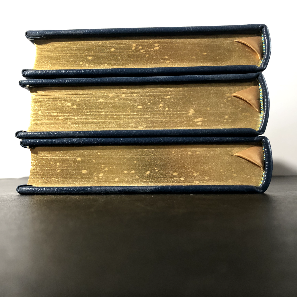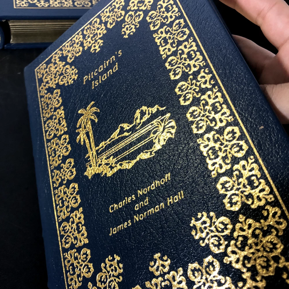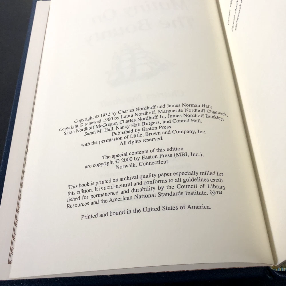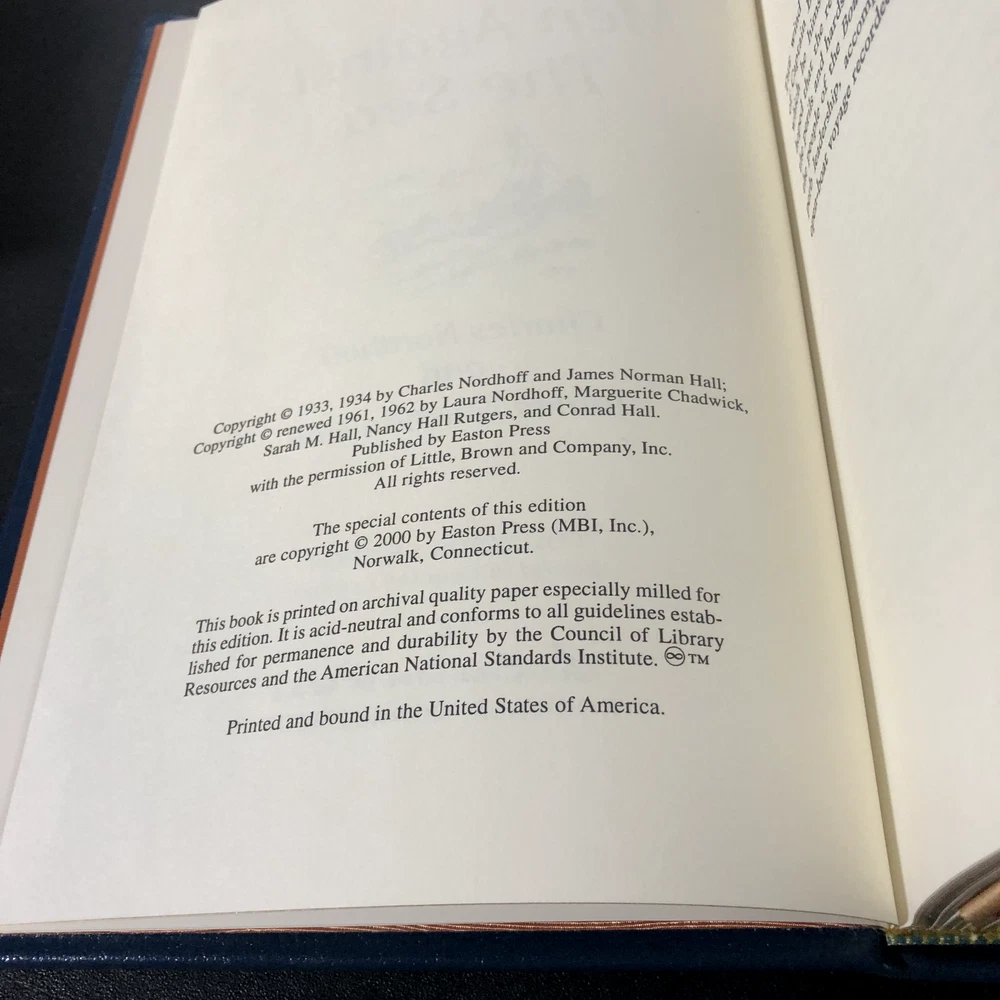 May have marks due to storage. Please see photos. This rare, luxury edition collector's set of the Nordhoff & Hall Bounty trilogy is a must-have for any book collector or fan of the classic Tarzan story. The set includes all three volumes bound in beautiful blue leather, with special attributes such as leather binding and a limited edition collector's shelf. The books are in their original language of English and were published by Easton Press, a renowned publisher of fine editions. The set is perfect for anyone interested in collecting rare and unique books, and would make a great addition to any collection.