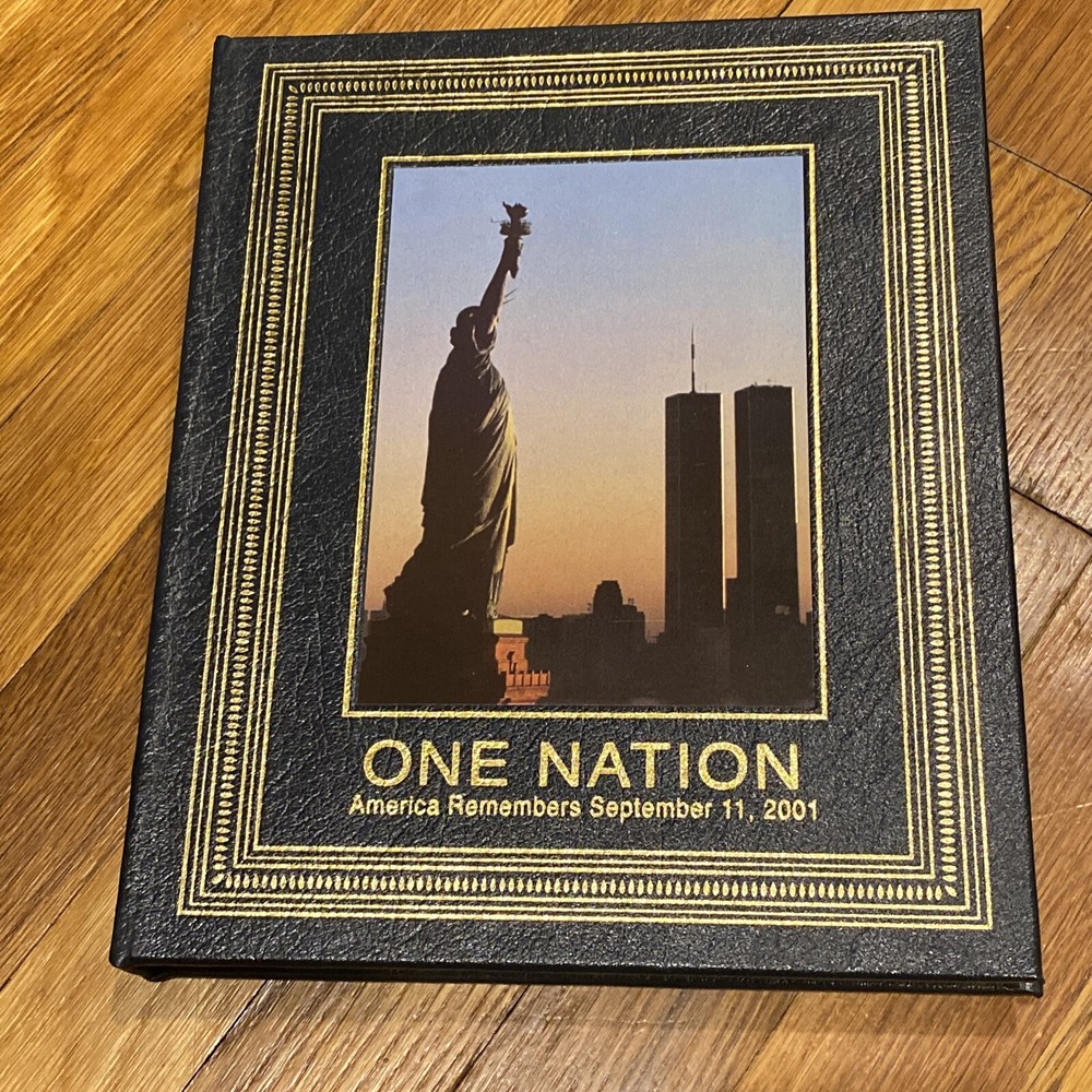 ONE NATION America Remembers September 11, 2001 EASTON Leather Hardcover Book in like new condition See photos