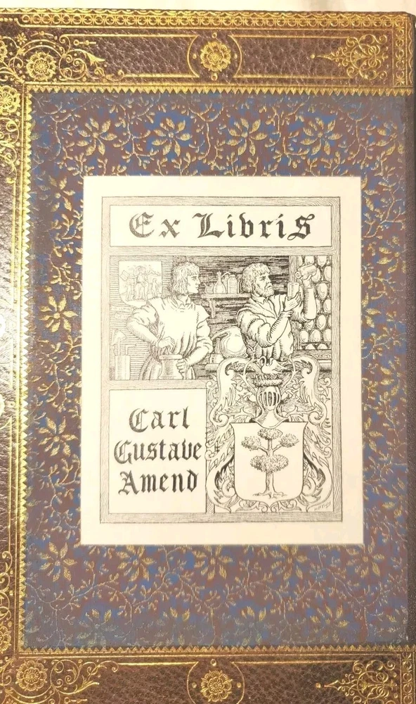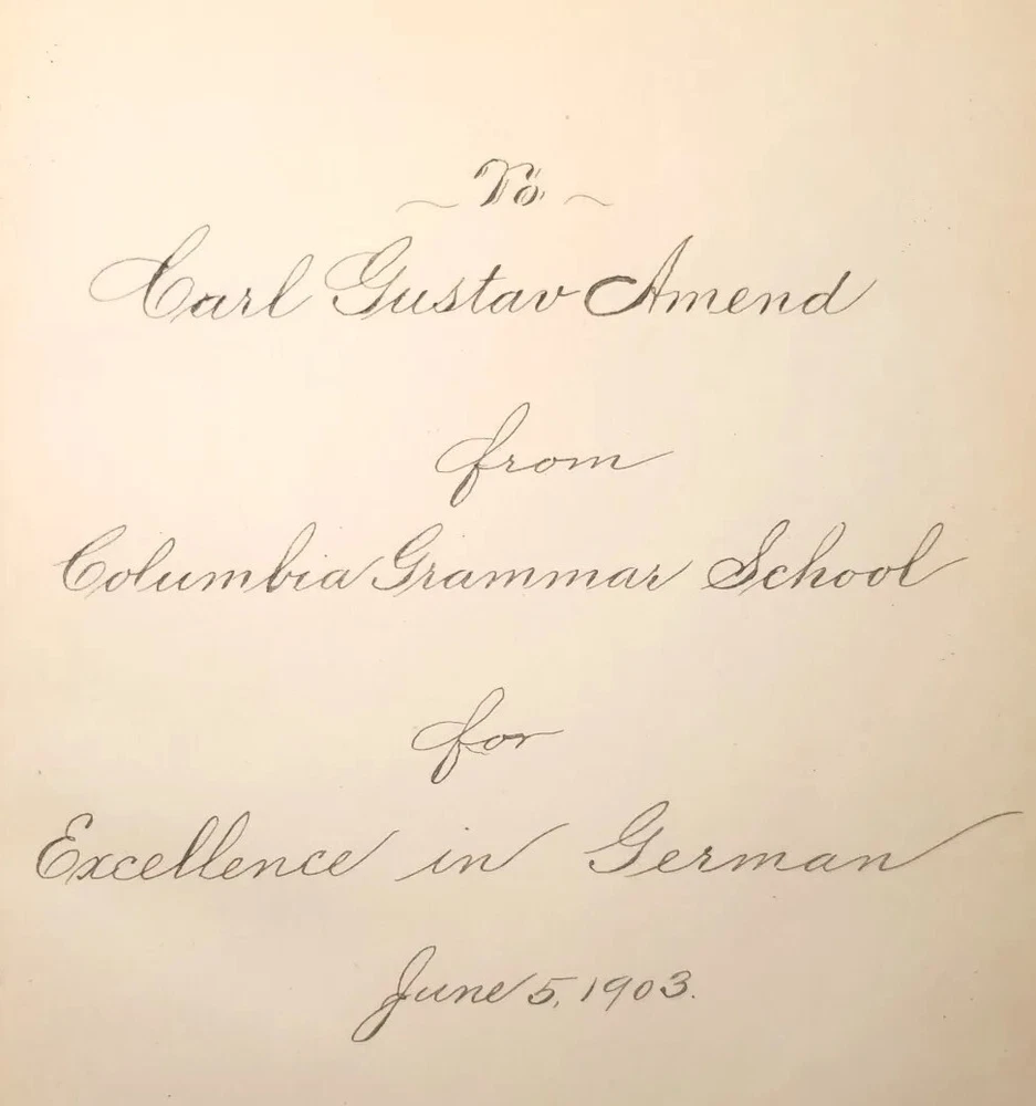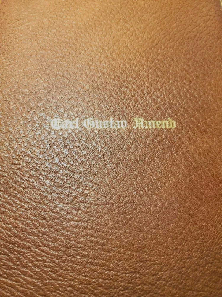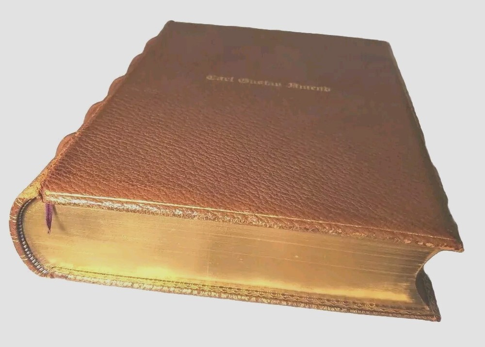 Unusually beautiful book. measures about 9" x 6". The leather binding is exquisite. There is a gorgeous grain in the leather over board. The gold gilded pages are filled with the complete works of poet John Greenleaf Whittier, printed in 1891 by Riverside Press. Many illustrations throughout with tissue protection and we do not find any foxing on the pages. Wonderful condition for its age. See pictures, please. It would make a wonderful addition to your collection or as a thoughtful gift for someone who appreciates fine literature. Five raised spine hubs, gold lettering, and, the fine leather binding. The inscription shows it was a prize gift from Columbia Grammar School to Carl Gustav(e) Amend, who later had a successful business in Pennsylvania before relocating to Brewster Village, New York in Putnam County. Don't miss the chance to own and display this gorgeous piece of history!