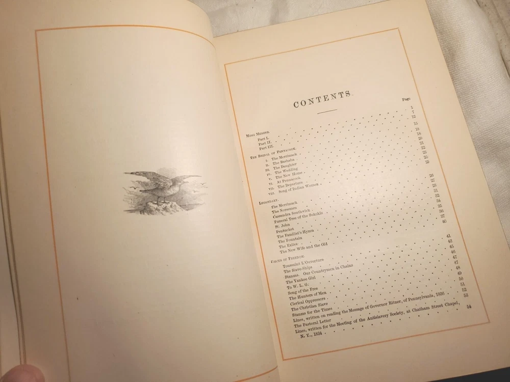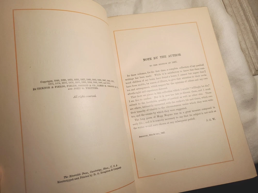 This stunning antique book is a true treasure—the rich leather binding with its beautiful grain and gold-gilded edges gives it an elegant, timeless feel. Inside, Whittier’s complete works are beautifully preserved with crisp pages, delicate illustrations, and protective tissues, showing no foxing despite its age. The craftsmanship is remarkable, and it’s in fantastic condition for being over 130 years old. Perfect for collectors or as a special gift for poetry lovers. The photos don’t do it justice—it’s even more gorgeous in person!