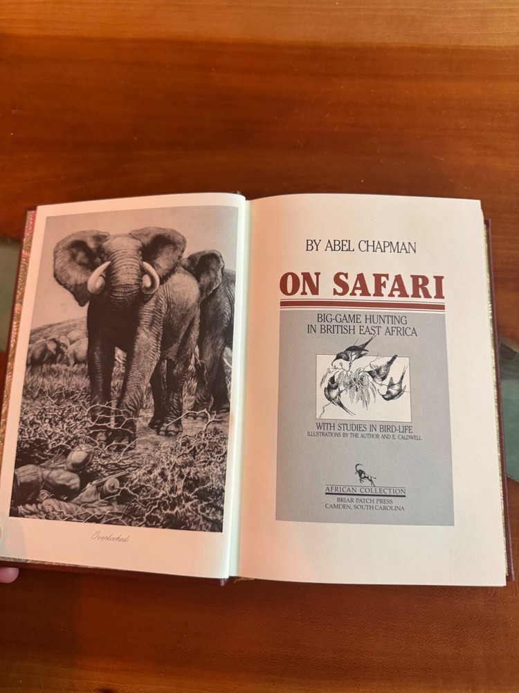 On Safari: Big Game Hunting in British East Africa with Studies in Birdlife by Abel Chapman – Deluxe Leather-Bound Edition This is a highly collectible leather-bound edition of On Safari: Big Game Hunting in British East Africa with Studies in Birdlife by Abel Chapman, a classic and sought-after work in African hunting literature. Bound in brown leather with raised bands, gilt stamped titles, and illustrated throughout by Edmund Caldwell, this edition is both elegant and durable-a standout addition to any Africana or sporting library. Chapman’s memoir details his extensive hunting expeditions across British East Africa in the early 20th century, with vivid accounts of pursuing buffalo, lion, elephant, and a remarkable variety of plains game, as well as keen observations on the region’s abundant birdlife. Condition: Excellent. Features: Full leather binding, gold gilt page edges, illustrated by Edmund Caldwell, 336 pages. Collector’s Note: Considered one of the most sought-after Chapman titles and a cornerstone of big game hunting literature. A beautiful and distinguished volume for any collector or enthusiast of African adventure and natural history. Detailed Contents Summary “On Safari: Big Game Hunting in British East Africa with Studies in Birdlife” by Abel Chapman is a classic narrative chronicling the author’s extensive hunting and naturalist expeditions across British East Africa in the early 1900s. Over the course of three major trips, Chapman and his brother Walter Ingram Chapman pursued more than fifty distinct varieties of big game-including elephant, lion, buffalo, and a vast array of antelope-making this one of the most comprehensive firsthand accounts of the region’s wildlife and sporting opportunities of the era. The book’s chapters detail adventures in the Rift Valley, the Enderit River, Lake Nakuru, the Mau Forest, the Athi Plains, and beyond. Chapman describes memorable hunts for elephants at Baringo, lion drives on Lake Nakuru, and the pursuit of oryx, eland, rhino, and other game in some of East Africa’s last virgin hunting grounds. The narrative is enriched by Chapman’s keen observations on the habits, habitats, and behavior of both big game and birdlife, with special attention to the diversity of antelope species and the challenges of hunting the most dangerous animals-especially elephant and lion, which he regards as the supreme trophies for any hunter. The book is further distinguished by its detailed illustrations from Edmund Caldwell, which faithfully capture the wildlife and landscapes encountered, and by Chapman’s thoughtful reflections on the changing face of Africa as colonial settlement expanded and game populations began to decline. Studies in birdlife are interwoven throughout, providing a valuable record of East Africa’s avian diversity alongside the big game narrative. On Safari stands as a cornerstone of African sporting literature, offering both thrilling adventure and important natural history, and remains highly prized by collectors and enthusiasts of big game hunting and early safari exploration. This edition is a leather-bound, gold gilt page edge copy in excellent condition-a truly distinguished and collectible volume for any Africana or big game hunting library.