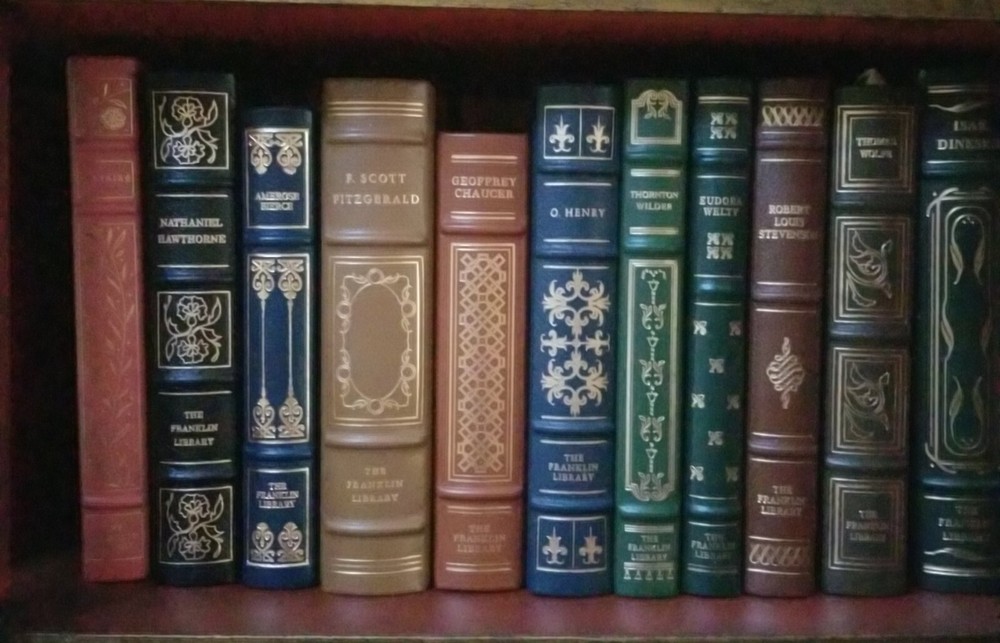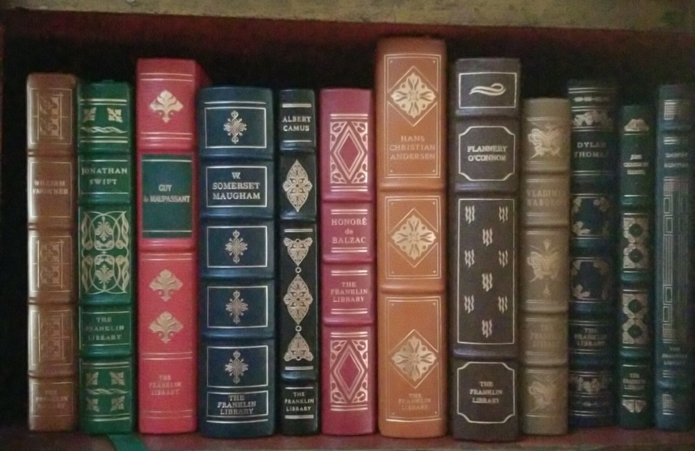 You may browse a selection of novels f rom The Franklin Library. This collection was obtained from a single owner who was a subscriber to The Collected Stories of the World's Greatest Writers series and received them directly from the Franklin Mint in the late 70s to early 80s. The listed price is for ONE BOOK from the list below. You select and after your purchase, message me with your choices . The books were displayed on a bookshelf. Some may have the Franklin Mint Gold Sticker Attached to the Front page. They are trimmed with gold page edging and are in excellent condition. Each book is - · Published 1977-1980 · Embellished with 22kt gold accenting on cover, spine and back · Has a permanent satin bookmark · Printed on acid free paper for durability · Produced beautifully in quarter bound leather While the listing is for a single book, you can purchase in any quantity from the list below . As long as the book is listed it should be available. If you buy more than one book at once, each additional copy will be wrapped separately and shipped in the same package for a combined shipping fee. The books are heavy! No returns. Shipped via USPS only. All International buyers are responsible for the fees and charges incurred by their country. The list of available books is below. Only the books that are listed are available. Bernard Malamud The Magic Barrel, Idiots First 1978 Sherwood Anderson 1980 Fyodor Dostoevsky Stories 1979 Alexandre Dumas Stories 1979 Thomas Mann Stories 1978 Graham Greene This Gun for Hire, The Confidential Agent, The Ministry of Fear 1978 Theodore Dreiser The Best Short Stories 1980 Ivan Turgenev First Love and Other Tales 1978 Voltaire Candide and Zadig 1977 Colette Stories 1977 Ambrose Pierce In the Midst of Life 1979 Eudora Welty Moon Lake and Other Stories 1980 Thornton Wilder The Cabala, The Bridge of San Luis Rey, The Wiman of Andros 1980 Isak Dinesen Seven Gothic Tales 1978 Thomas Wolfe From Death to Morning 1979 Robert Louis Stevenson New Arabian Nights 1979 Guy de Maupassant Stories 1977 Honore de Balzac Droll Stories 1978 Albert Camus Exile and the Kingdom 1980 W. Somerset Maugham Selected Stories 1979 Damon Runyon Guys and Dolls 1979 Joel Chandler Harris Uncle Remus 1979 Dylan Thomas Collected Stories 1980 Vladimir Nabokov Nabokov's Dozen 1977 Flannery O'Conner The Complete Stories 1980