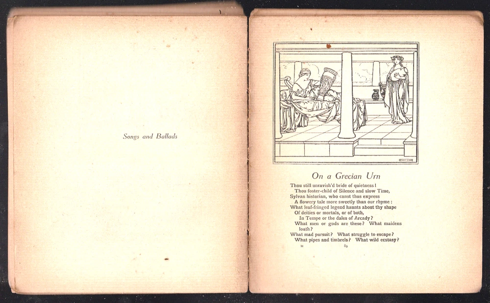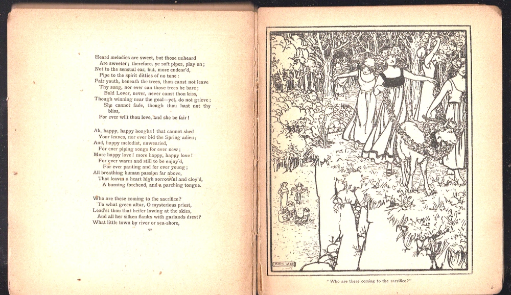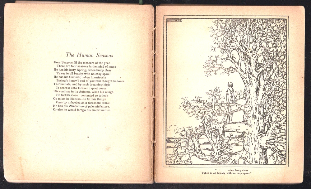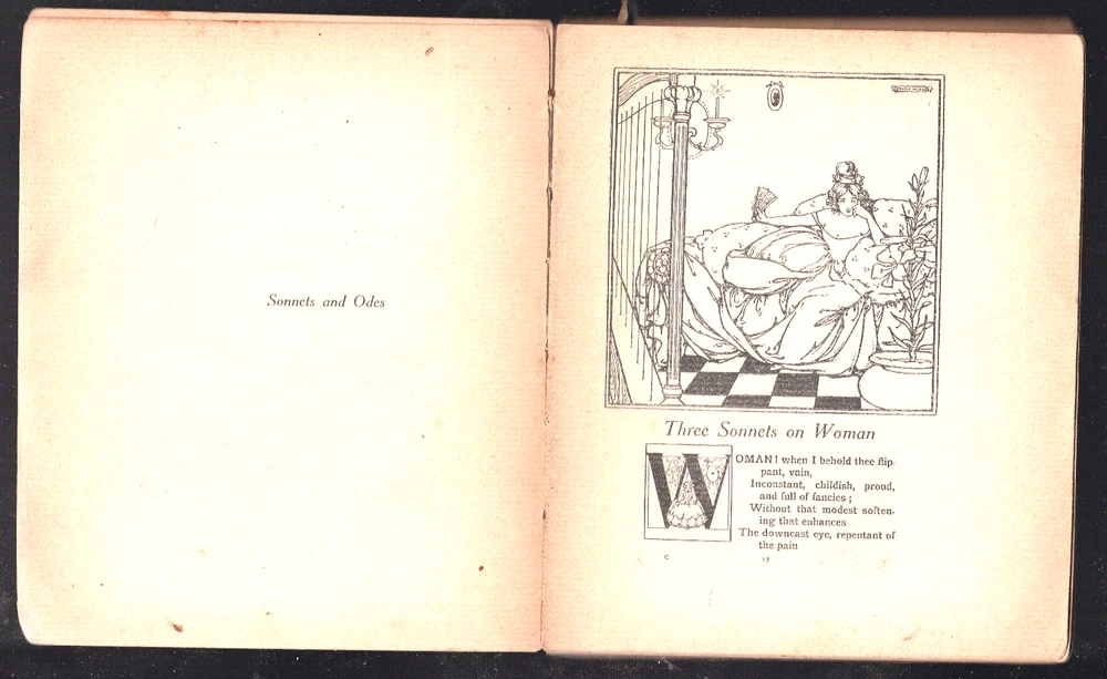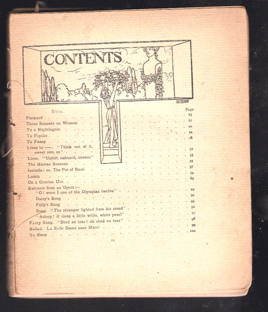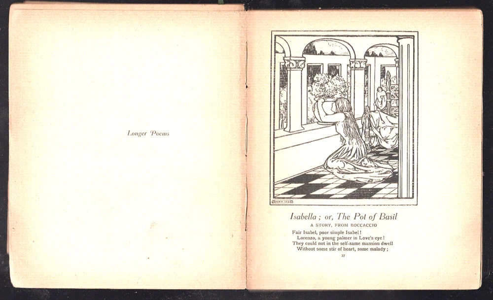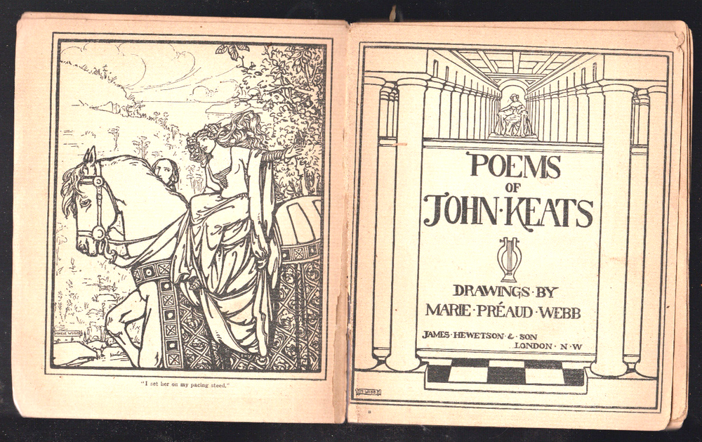 Bookrespect We classify our books...FINE/VERY GOOD/GOOD/FAIR/READING COPY ONLY (+ or -) POEMS of JOHN KEATS 1795-1821 with drawings by Marie Preaud Webb Publisher: James Hewetson & Son (thus published after 1907), assumed first and only edition. Dustjacket: none Illustrated: by Marie Preaud Webb. The artist was born in London in 1879 and died in Chichester, Sussex, in 1964. Her main period of artistic production was in the first decade of the 1900’s, mainly doing illustrations for James Hewetson and Son, the publisher of her Rubaiyat edition. Cecil Charles Hewetson, the ‘son’ in the publishing firm, provided the Foreward to the Rubaiyat edition, and, in 1910, he and Marie Preaud Webb were married. Condition: Suede, leather-bound cover with remnants of gilt title to damaged spine, gilt motif title to front cover (see scans), LOOSE BINDING,in ACCEPTABLE CONDITION, complete but needs re-binding with bookplate presentation dated 1910 to prelims, marbelled endpapers. All pages intact but beginnings and ends dis-bound, cover loose.(see scans). The faded place ribbon is detached but still in situ. This is the third of four rare publications in Hewetson's Queen's Quartos series. The others were (1) The Dream of Gerontius; (2) The Rubaiyat of Omar Khayyam and (4) Over the Hills, an Open Air Anthology. All have wonderful illustrations by Marie Webb, in the Art Nouveau style. Her illustrations are often taken from the books and sold individually. Reproductions are offered at 99 Euros in Europe. There are YouTube postings about Webb's artwork Nos (1) Gerontius and (2) Rubaiyat are available, if scarce This 3rd book of the series is unavailable anywhere that I can find. Bob Forest says on his website ““The Queen’s Quartos” listing of Fig. 2 indicates that no.3 of the series was “Keats’ Poems”, and no.4 was “Over the Hills: an Open–air Anthology” "I have never seen either of them, and a search of Jisc Library Hub Discover (formerly COPAC) reveals that no major library in the UK has them either”. Thus this book is a RARE copy, but needs re-binding. POSTAGE: Postage is free within Australia and includes Australia Post tracking. Orders are posted within 1 business day.
