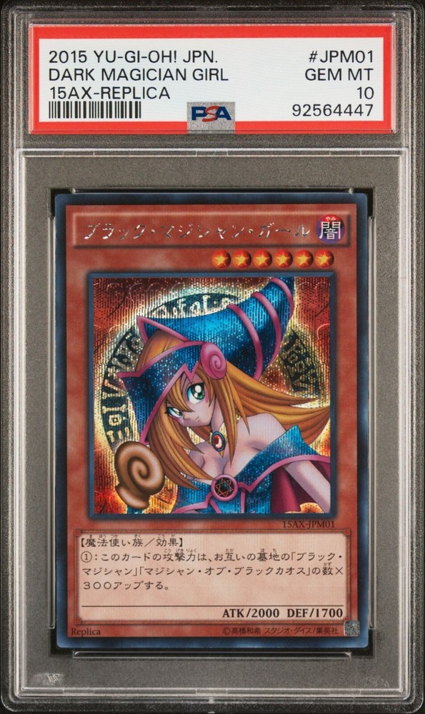 This listing is for a PSA Graded card: PSA 10 Dark Magician Girl Secret Rare 15AX JPM-001 Yu-Gi-Oh Japanese Card All slabs are put in sleeve bag, bubble wrap and box to ensure no damage takes place during transit. I have many more graded cards for sale! Cert number you recieve might not be the same as the photo, some cards have miltiple quantities others restocked. Any questions feel free to ask :)