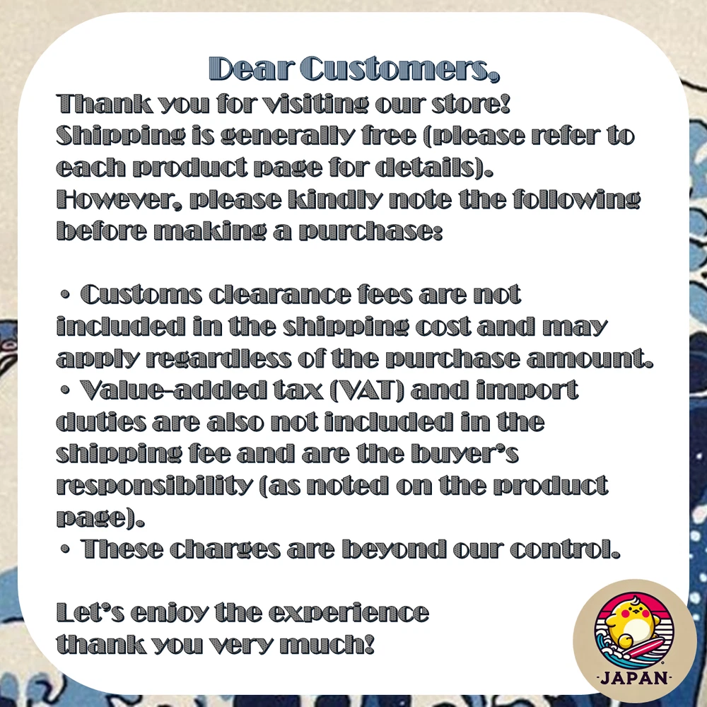Item details If you have any questions about this product, please feel free to send me a message. Shipping If shipped by FedEx or DHL, it will arrive in about one week after dispatch. If shipped by Japan Post, it will take approximately 2 weeks to 1 month after dispatch. Return Returns are accepted within 30 days. Please Note: Import duties, taxes and charges are not included in the item price or shipping charges. These charges are the buyers responsibility. Please check with your countrys customs office to determine what these additional costs will be prior to bidding/buying. These charges are normally collected by the delivering freight (shipping) company or when you pick the item up - do not confuse them for additional shipping charges.