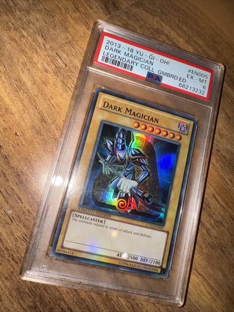 This is a rare and highly sought-after Yu-Gi-Oh card featuring the powerful Dark Magician. It comes from the Legendary Collection 3: Yugi's World set and is a limited edition card with a holo finish. The card is made of high-quality card stock and has been professionally graded by the respected Professional Sports Authenticator (PSA) with a grade of 6. The Dark Magician card is a monster type card with the attributes of a spellcaster. It was manufactured in 2013 and is in English. This card is perfect for collectors and players alike and is sure to be a valuable addition to any Yu-Gi-Oh collection.