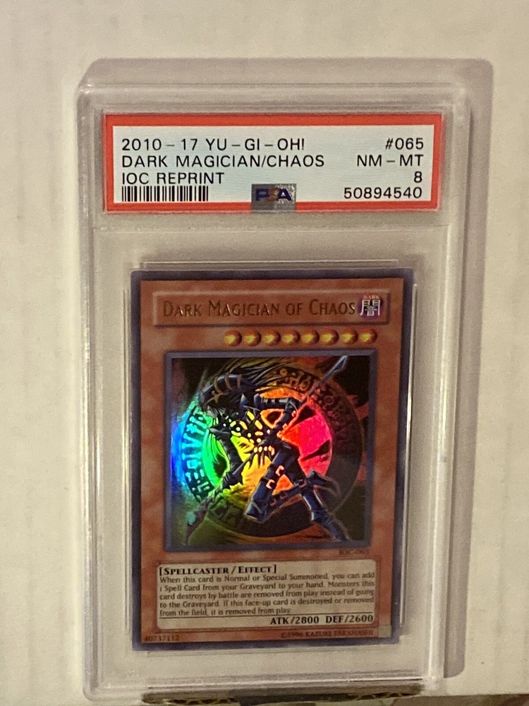 PSA 8 Near Mint - Mint Yugioh Dark Magician Of Chaos IOC 065 Unlimited Reprint.