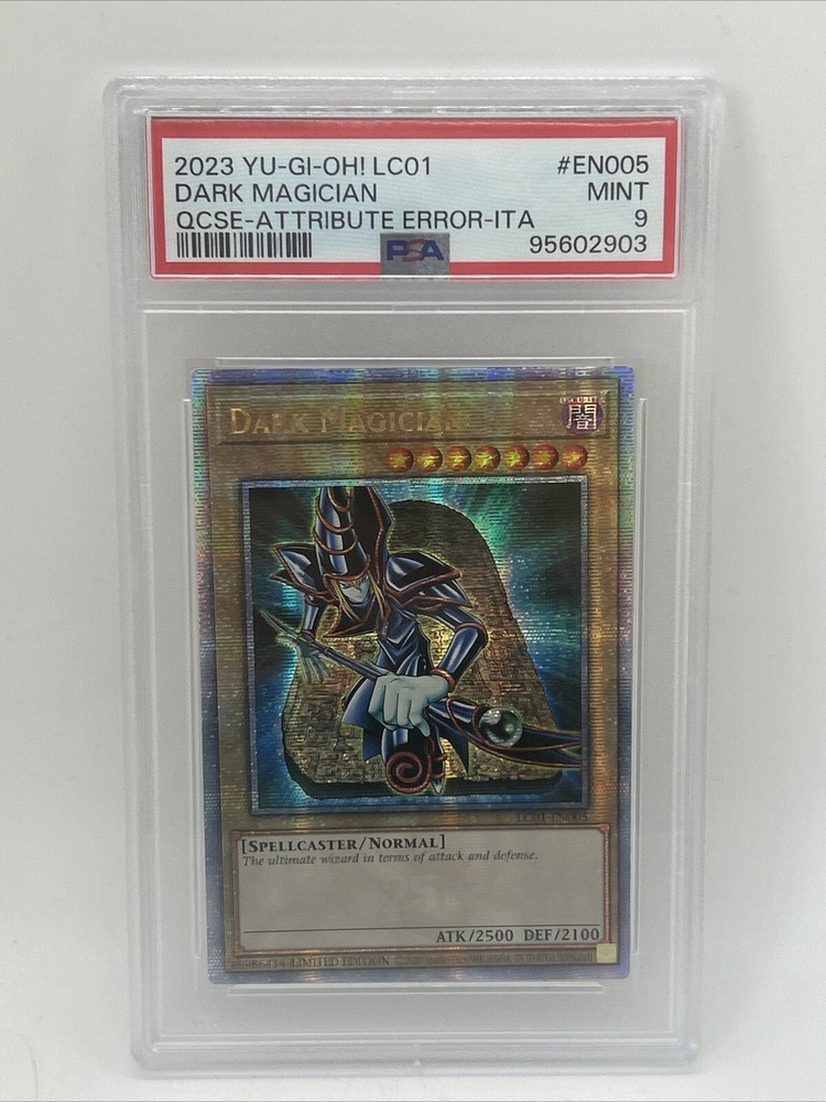 This PSA 9 2023 Yu-Gi-Oh! DARK MAGICIAN Quarter Century Rare #EN005 card is a must-have for any fan of the Yu-Gi-Oh! TCG game. With its stunning holo finish and English language, it is sure to be a standout addition to any collection. The card features the iconic Dark Magician character and is made of high-quality paper material, manufactured by Nintendo in the United States. This standard-sized card is ideal for players aged 13 and above, and it comes from the 25th Anniversary Legendary Collection set. The card is a spell type and belongs to the attribute of darkness. It is not autographed and is not considered vintage. This card is perfect for collectors and players alike who are looking to add a rare and unique card to their collection.