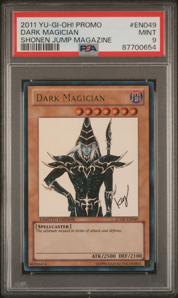 Hello y'all, This listing is for PSA 9 DARK MAGICIAN JUMP-EN049 SHONEN JUMP ULTRA PROMO YUGIOH KAZUKI TAKAHASHI I ship within the US and for outside the US with the eBay Global shipping program. If you have any questions, please feel free to message me! Thank you for checking out my listing and check my page for more anime merchandise and cards!