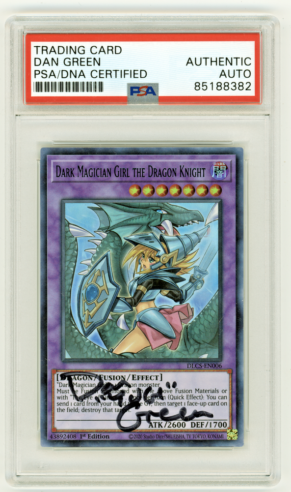 This rare and collectible Yu-Gi-Oh! TCG card features the beloved Dark Magician Girl the Dragon Knight in the alternate art, signed by voice actor Dan Green. With its Ultra Rare rarity and 1st Edition feature, this card is a must-have for any serious collector. The Holo finish adds extra shine to the beautiful artwork of the card, depicting the Dark Magician Girl in her knightly armor. The card belongs to the Dragons of Legend: The Complete Series set and is in English language. It also features the Knight creature/monster type and is manufactured by Konami. This card is perfect for any fan of the Yu-Gi-Oh! franchise, especially those who love Dark Magician Girl.