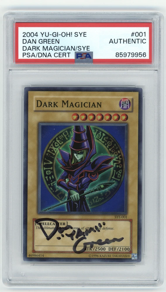Own a piece of Yu-Gi-Oh! history with this PSA-signed Super Rare Dark Magician SYE-001 card from the English language starter deck. This card features stunning holographic finish and was illustrated by Kazuki Takahashi, the creator of the beloved anime series. Its autographed status adds extra value to this rare collectible, making it a must-have for any fan of the game or the series. Don't miss your chance to add this gem to your collection!