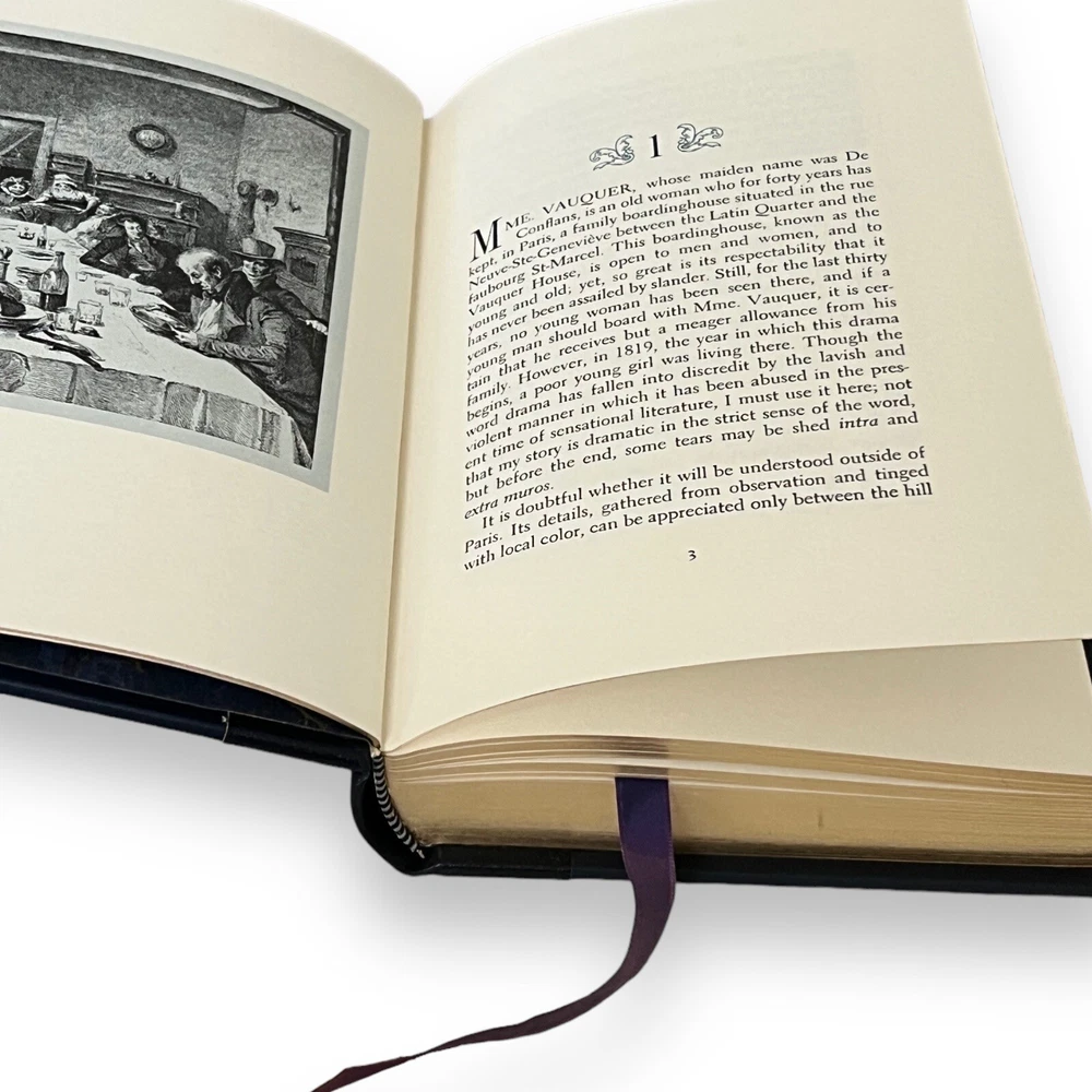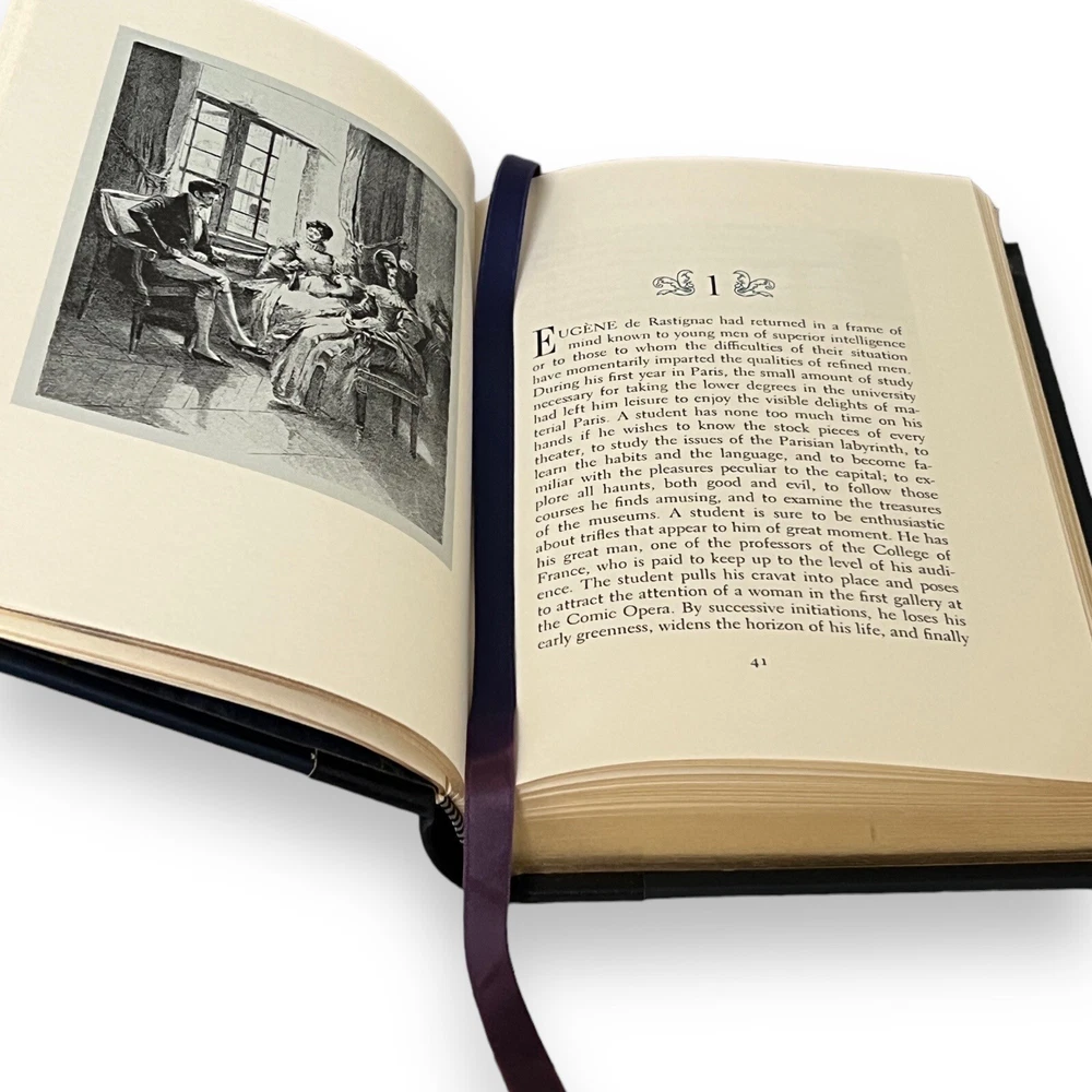 Pere Goriot by Honore De Balzac Collectible Deluxe Leather Franklin Library 1980 ABOUT THE BOOK: This illustrated collectible edition is in good condition (see pictures). In the original faux leather boards, elaborately gilt stamped. This book has a genuine leather cover with 22 kt. gold accents and lettering, raised spine bands, silk moire endpapers, gilt-edged pages. Publisher THE FRANKLIN LIBRARY, PENNSYLVANIA, USA; 1980 Illustrated by Albert Lynch Language English Series Title Leather-Bound Classics Book Format Leather Bounded Hardcover