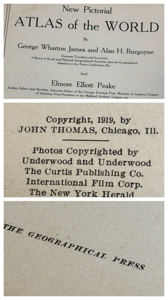 Pictorial Remapped World Leather Bound George Wharton James Vintage 1919 To be over 100 years old, it is in fairly good condition. Please message any questions you may have Thanks for looking!...