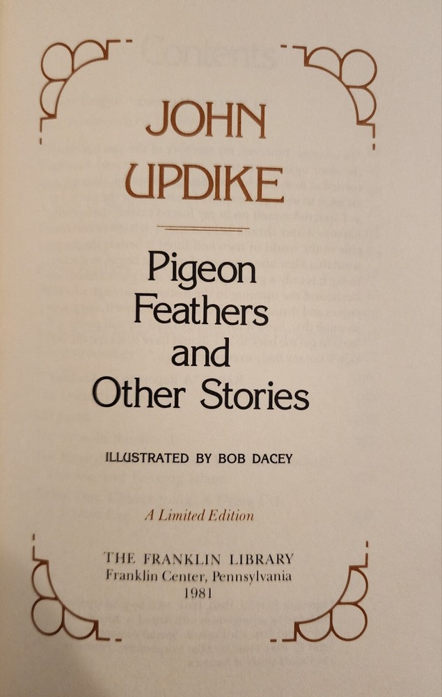 Pigeon Feathers- Franklin Library-Leather- John Updike- Worlds Greatest Writers. Protected by Mylar cover. Will package with extreme care.