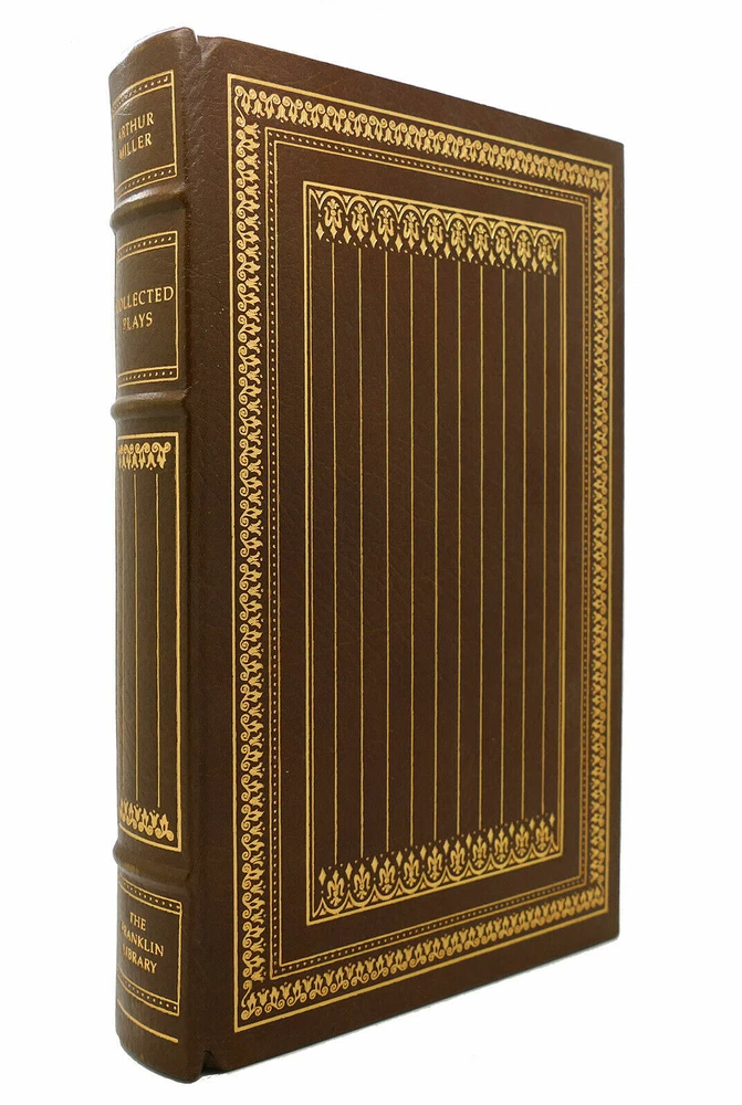 This is full genuine leather bound in new and sealed condition, never opened or read. The publisher’s notes booklet is inside the plastic wrap. The last photo is for exemplification only. There is also minuscule oxidation on the gold gilt of the page block as shown in photos. This book is the perfect find, perhaps the last one to be found in plastic wrap. It laid in waiting for nearly 40 years to find its unique loving owner. 'Collected Plays' by Arthur Miller is one of Franklin Library's ‘100 Greatest Masterpieces of American Literature’, with wonderful attributes: •Fully and tightly bound in genuine leather. •22kt gold accents deeply inlaid on the "hubbed" spine and covers. •Heavy duty binding boards enhance the book’s durability. •Superbly printed on acid-neutral paper that lasts for generations. •Sewn pages – not just glued like ordinary books. •Handsome moiré end pages and a satin-ribbon page marker. •Gold gilded page ends. •Rigorous inspection at every stage ensured adherence to exacting standards and the highest quality. •Superb craftsmanship and commitment to quality. The appeal for collecting Franklin Library comes from having these attributes taken way further into the exquisite quality, durability and craftmanship, than Easton Press and Folio Society managed with their productions. This book is the perfect companion out on a park bench with a hot cup of coffee or snuggled up in front of the fireplace. Despite its all-inclusive nature it still feels very light and compact at a size of 4.5 x 16 x 24cm. Wonderful to hold and excellent reading experience.