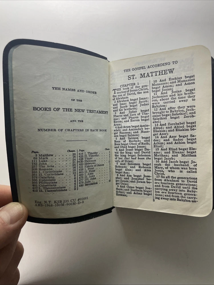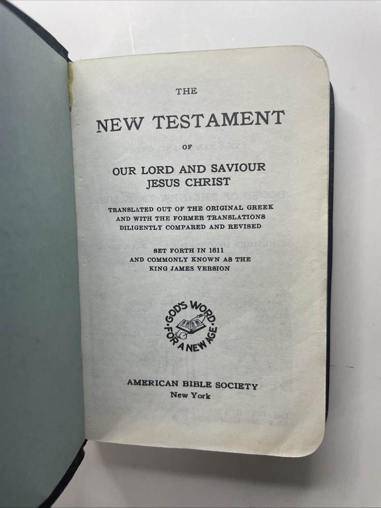 This pocket size New Testament Bible from 1966 is a beautiful addition to any collection. The leather binding gives it a classic feel, while the KJV translation makes it a timeless piece of spirituality. Perfect for Christians who appreciate the beauty and history of their faith, this Bible is a must-have for any collector. Its small size makes it easy to carry around, so you can take it with you wherever you go. American Bible society New York God’s Word For A New Age