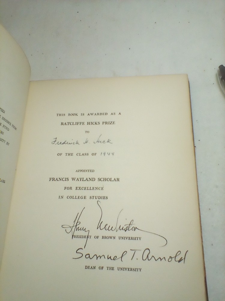 Cambridge: The Riverside Press. Collectible-Very Good/NO DUSTJACKET. 1935. LeatherBound. A Prize Award in 1943 from the President and Dean of Brown University . 8vo., 3/4 leather with 6 compartments ....