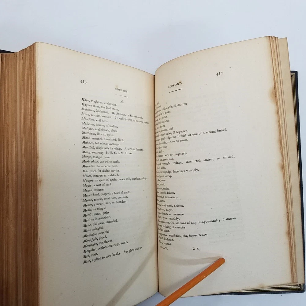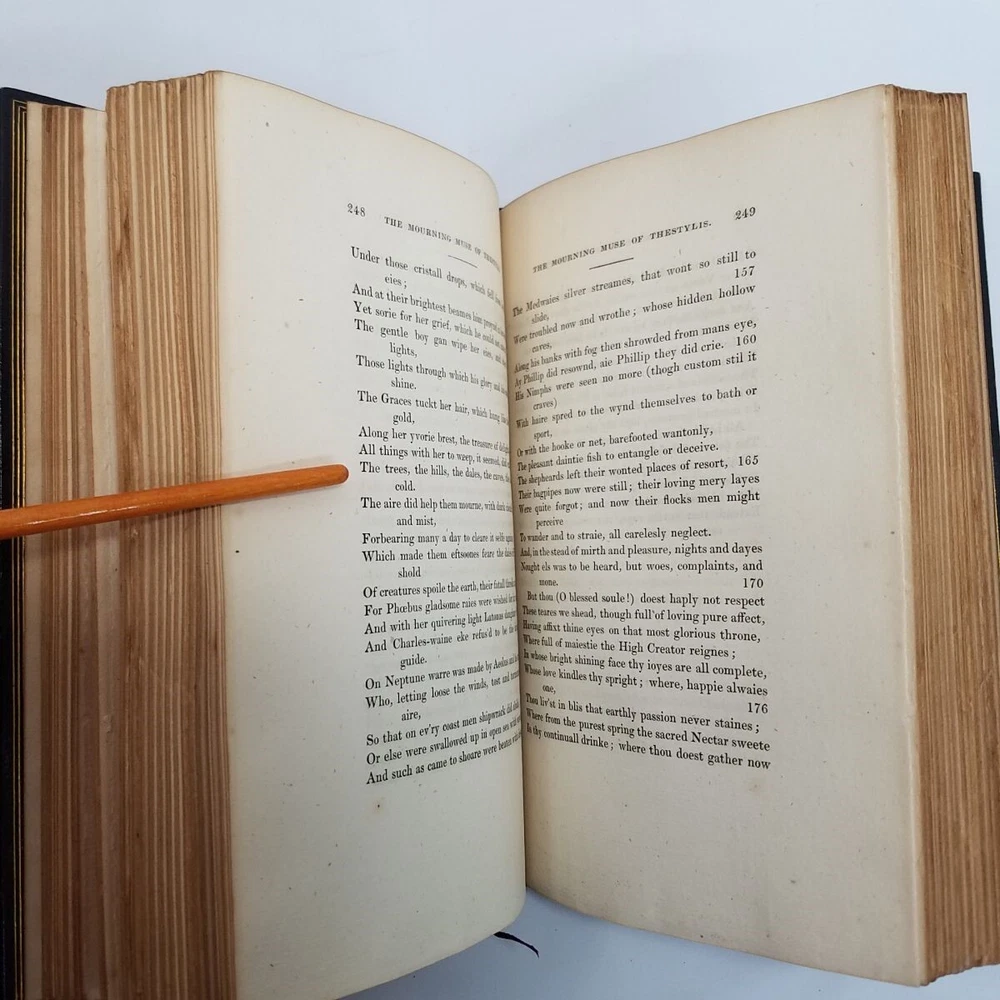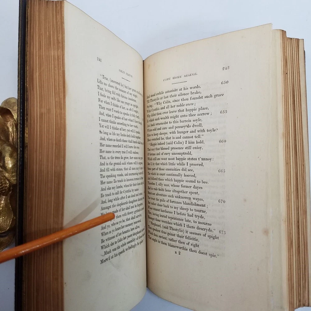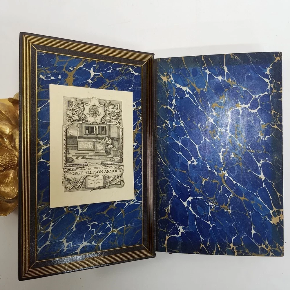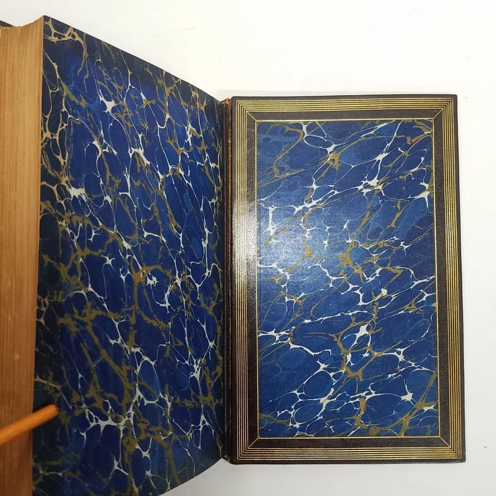 Poetical Works Edmund Spenser 5 Vol Set Leather 1825 Pickering Edition Bentley Text has light tanning, small amount of scattered foxing, a few minor handling marks in Volume I, and darkening to some page edges. In volume i, there are penciled dealer inventory notes on reverse of front free endpaper, and similar at rear. No markup within the text. Text blocks square. Hinges and joints all strong. Endpapers in all volumes bright and beautiful, with some darkening where they rest against the turn-ins. Boards show rubbing at spine edges and ends, light wear to extremities. See particularly the example photos of Volume I, which has the most visible rubs along edge of spine. Odor free. A very solid set. Leather bound with gilt decoration and titling. 6 compartment spines. Gilt ruled turn-ins. Top edges gilt. Marbleized endpapers. Volume I includes the bookplate of George Allison Armour, who was the son of Chicago Board of Trade president George Armour. Truly a lovely set that is a pleasure to hold and read. Spenser, Edmund. The Poetical Works of Edmund Spenser, in Five Volumes . London, 1825. William Pickering. Printed by S. & R. Bentley. Bound by Bradstreet's. All images are photos or scans of the exact item you will receive. No stock or re-used photos. Please review images and condition notes, and feel free to ask any questions you may have. We are pleased to offer international shipping. However, international buyers please note that import duties, taxes, and charges aren't included in the item price or postage cost. These charges are the buyer's responsibility. Please check with your country's customs office to determine what these additional costs will be, prior to bidding or buying. We are also happy to combine shipping on multiple purchases. To combine shipping, place the items in your cart, but do not pay. Open your cart and you should see a link that says "Request Invoice" or "Request Total", usually located somewhere toward to the top right of the cart. Click on the link. When we receive the request we will get your items weighed and packaged, and send you an invoice with combined shipping. This will happen either the same or next business day depending on time of request. You will receive a message from Ebay with the invoice and can make your payment from there. If it's not convenient for you to wait for an invoice or you have trouble finding the link, feel free to go ahead and buy the items. We will refund the difference after shipping. Thanks for your interest!