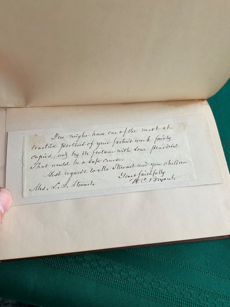 This book is a rare find for poetry enthusiasts and collectors alike. The poetical works of William Cullen Bryant, published in 1885 by D. Appleton and Company in New York, is a treasure trove of literary history. The book is bound in leather and features an original printing in English. Not only is this book a great addition to any collection, but it also includes a signed note from the author himself. This is a must-have for any serious collector of literature and fiction. The book covers a wide range of topics and subjects, and is sure to be a valuable addition to any bookshelf.