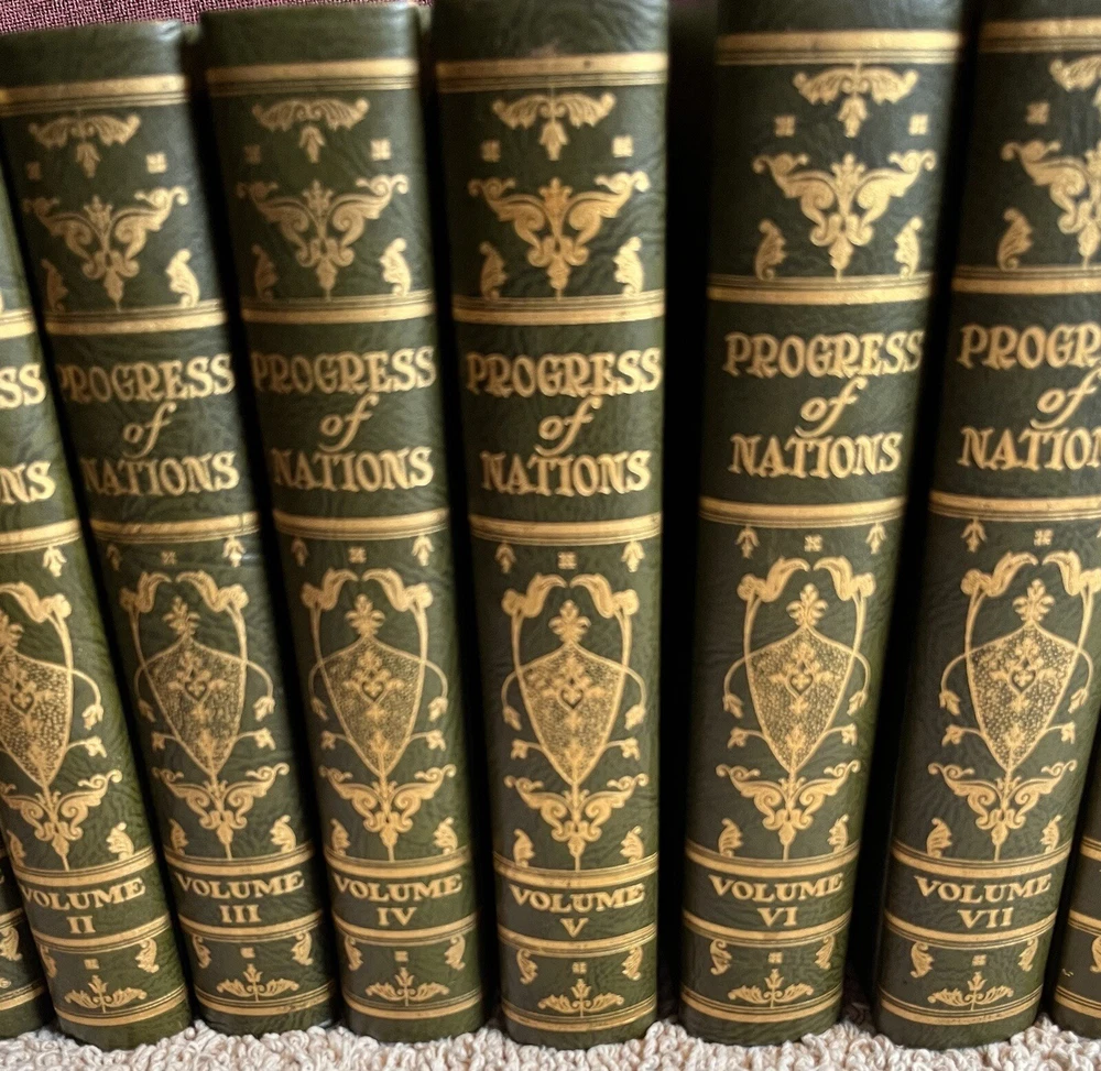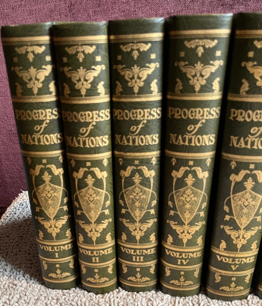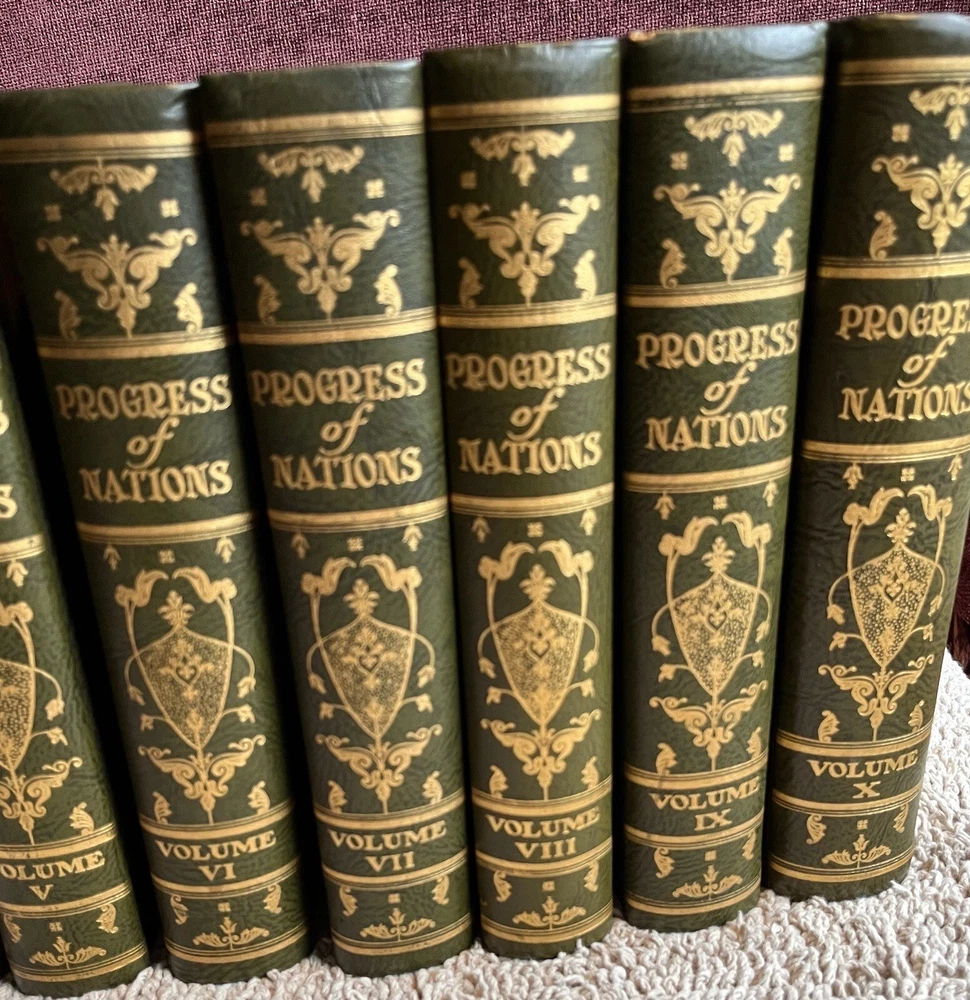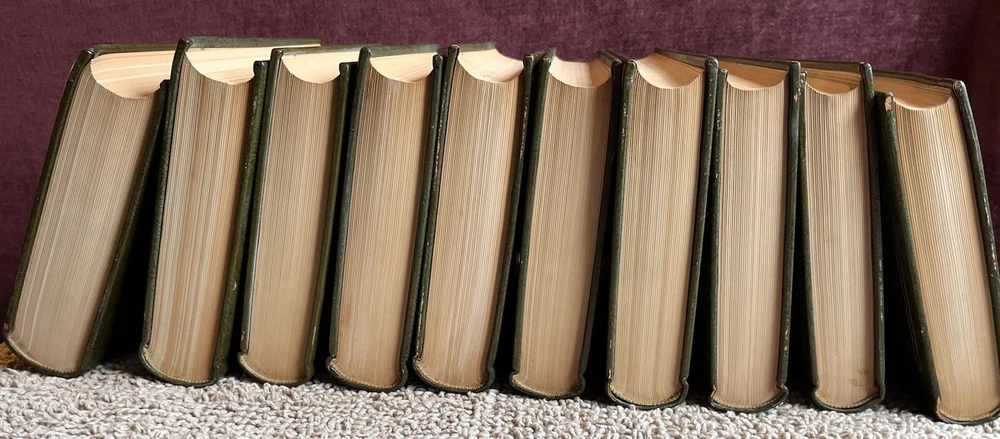 This is a complete set that will be a valuable addition to any book collection. Looks distinquished on a book shelf with the beautiful leather bindings and top edge gilt. The set is in fine condition. No marks or tears on pages, binding is very good. Couple small blemishes on outside of a couple of volumes.