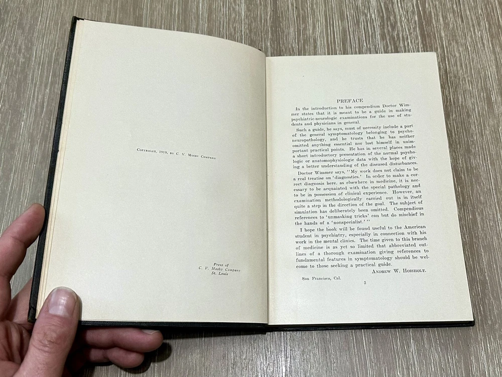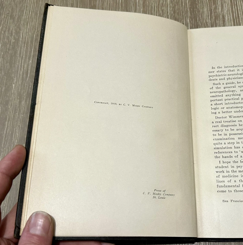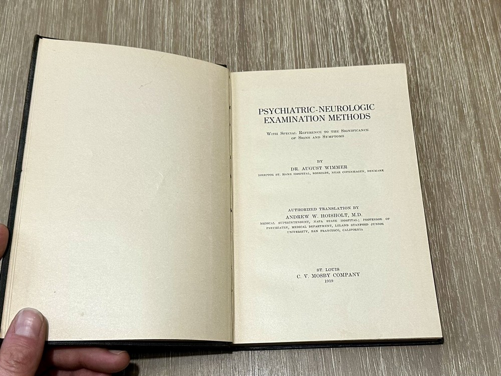 This antique hardcover book, "Psychiatric-Neurologic Examination Methods" by August Wimmer, is a valuable addition to any medical history or antiquarian collection. Published in 1919 by C.V. Mosby Company, this leather-bound cloth book contains 177 pages of informative content on the topic of Methodism. The book is in excellent condition and is a great resource for adults interested in the history of psychiatry and neurology. The book is also a great collectible item for those interested in vintage books and medical history. B1s 2.20