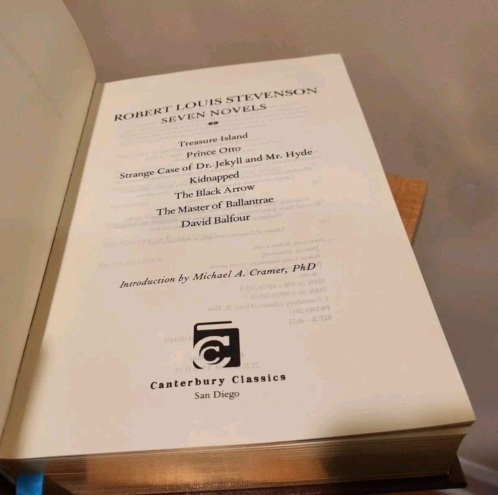 ROBERT LOUIS STEVENSON SEVEN NOVELS 2011 Canterbury Classics Hardcover Leather ? Great Copy. Never Read ? Pretty sure the cover is real leather. 2011. See images posted and use close up feature. Thank you for your interest in my listed item. By looking at my store you can see, I sell a variety of items. Please read further to see details on this item. If you have any questions about any of my items, please email me before purchasing. PLEASE READ LISTING FULLY & VIEW ALL POSTED IMAGES CLOSELY . Images poste d represent the condition of the item. I do my best to describe things accurately in the condition section and post clear pictures of the item, however at times I might miss something. Please note: It Is Very Important to Note, that most of my items I sell unless stated otherwise are used and preowned. Please take that into consideration when thinking of purchasing. Since most of these items were not owned by me, I do not know their history - for example I do not know if they came from a smoke and / or pet free environment. Regarding Shipping : In most cases items are shipped USPS Priority or Ground Advantage based on calculated shipping. When possible, I use a flat rate envelope (usually padded) from USPS. Most times books and other media are shipped via MEDIA MAIL. On rare times I might use FEDEX or UPS. I will combine shipping if asked and if possible. I take a good amount time to pack my items carefully, so they arrive in the condition they were in when shipped. Trading cards if under 3 ounces are ship by EBAY Standard Envelope Rate. International Shipping is only via eBay Global Shipping Program. Some items I do not make available for international shipping. If you would want your items to ship any other way, please let me know. In most cases there is no local pick-up or local delivery whatsoever. Please Note: Concerning packing material, I use mostly bubble wrap and some newspaper / packing paper and maybe an added piece of cardboard for protection of the many fragile items I sell. All the bubble wrap, shipping boxes and envelopes I buy new. (A few times maybe I will use a used box). USPS Boxes I get via USPS. I take special care in how my items are packed and how the package looks when shipped. Dishes / Mugs, Cups (fragile, metal or plastic) / Glassware / Bowls / Platters, plates, Silverware or similar items: Please hand clean very thoroughly (unless it is noted it can also be put in a dishwasher) when received. Outside bottom of item(s) might be discolored and / or show wear and there could be some old stickers residue. On any mugs or tumblers that have travel lids, please test that lid works properly before using. Also mugs or other dishes might have gold trim. Many items with gold trim or logos probably cannot go in the dishwasher or microwave. Mugs could also have stir marks on the inside bottom. With silverware they could have stains and /or tarnish from age. These need to be cleaned when received. Also, since many items are older, they might show crazing and I do not know if they are dishwasher or microwave safe. Plus, there is no way to know if such older items are lead free or if similar materials were used (that are not used any longer) in manufacturing years ago - hence these items are sold as is. Ceramic Display Steins / Glasses and Collectible Display Plates/ Mugs: Please hand clean thoroughly when received. Like dishware they might have similar types of wear, and many have gold like trim. These are just display items. Ashtrays: Please wipe down clean or hand clean items when received. Outside bottom of item might be discolored or show wear or old sticker residue. Candles: I only sell these if the wick shows it has never been lit. Please note that these will be considered new even if the lids are not sealed or previously owned. Please REAL ALL WARNINGS and INSTRUCTIONS for SAFE USE of these candles. These are not returnable. Trading Cards: Please see all photos of cards and use closeup feature to see any flaws. These cards are not graded professionally, and I do my best to give an accurate condition. Card(s) will be in a penny sleeve and a top loader with blue painter tape on top. If under 3 ounces it be sent via Ebay Standard Envelope rate. Metal / Plastic / Ceramic / Fabric / Craft/ Wood Made Items (Home Décor) which includes holiday decoration / ornaments: Wipe down clean when received. These are mostly display items and are generally Home Décor items. This includes framed items like photos and paper printed or canvas artwork. Fabric Craft type of work and kits. Also includes items like candle holders. (Please use with caution and proper use and read all safety warnings.) Books, DVDs CDs, VHS, Vinyl LP records, Software, magazines, and other types of media: Many books / magazines are old / vintage and might have spotting, ripped dust jackets, inside dust jacket tape repairs, old sticker residue, hard boards that have some discoloring and spines/gutters that have wear. Some of the pages might have some yellowing. Many books / LPs due to age might have a slight musty smell. With DVDs, CD?s, audio cassettes, 8-Tracks and vinyl LP records, that are not new and sealed, they can sometimes have wear to the cases/ sleeves and discs / records could have visible surface marks. With vinyl records I do not grade them in anyway and they will only be shown in photos. They could skip or not play properly. However, I would not try to sell a vinyl record if to me it looked overly worn or scratched. All preowned tapes (cassette and 8-track) and vinyl audio items usually are not tested. With DVDs please be aware of the ratings for each DVD movie (since I tend to sell these in lots at times.). Buyer responsible to make sure from listing that DVD and Blu-Rays can play for their region. I do not accept returns for media items in most cases. Signed or Autographed Items: These items might or might not have a C.O.A. but will be noted in the listing if they do or not. Car / Automobile Pa
