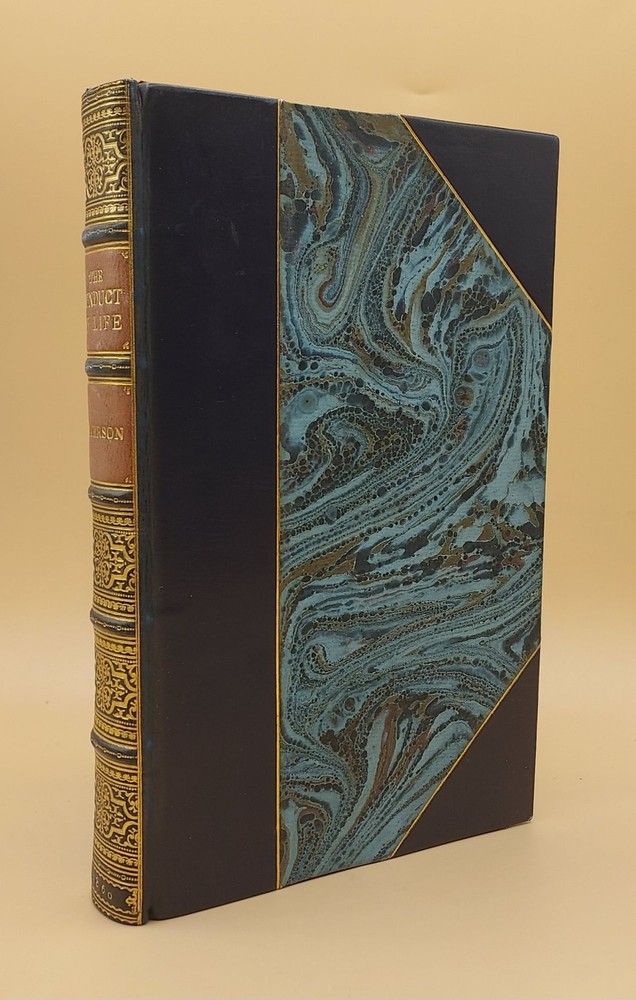 The Conduct of Life (Sangorski & Sutcliffe binding) Author: Emerson, Ralph Waldo Title: The Conduct of Life (Sangorski & Sutcliffe binding) Publication: London: Smith, Elder and Co, 1860 Edition: Author's edition Description: Leather bound. 287pp. Octavo [20 cm] Bound by Sangorski & Sutcliffe in 3/4 blue leather with marbled paper over boards, a lavish gilt tooled spine, and two red leather spine labels. Top edge gilt. Marbled endpapers. The spine is ever so slightly sunned (gilt remains incredibly bright). Very Good +. Emerson's collection of essays exploring various characteristics of individual behavior and human character. "The Conduct of Life (1860), Emerson's most mature work, reveals a developed humanism together with a full awareness of human limitations. It may be considered as partly confession." - Britannica.com. Seller ID: 63846 Subject: Philosophy Ken Sanders Rare Books Ken Sanders Rare Books is a full-service antiquarian bookshop in downtown Salt Lake City. We have a vast inventory of used and rare books, a handful of new books, and an ever-changing selection of art, ephemera, maps, photographs, and postcards. We specialize in Utah & the Mormons and Western Americana, with emphases on the Grand Canyon and the Colorado River, Yellowstone, and other national parks. The literary West is well-represented here, with deep selections of Edward Abbey, Wallace Stegner, B. Traven, and more. We offer rare and collectible books in many subjects, including Literature, Art, Photography, Children's and Illustrated Books, and Wordless Novels. Proprietor Ken Sanders has been buying, selling and collecting books since childhood. He co-owned and ran the legendary Cosmic Aeroplane Bookstore in the 1970s and founded Dream Garden Press , our in-house publishing company, in 1980. Terms & Guarantee All orders ship within 1-3 business days after receiving payment. Standard mail is USPS Media Mail. Delivery typically takes 7-10 business days after shipment. Expedited and international shipping options are also available. All items are guaranteed to be as described or they may be returned within 30 days of receipt for a full refund (prior notice appreciated). We are members of the ABAA (Antiquarian Booksellers Association of America) and the Independent Online Booksellers Association (IOBA), and we adhere to these associations' strict ethical guidelines and conditions of sale. Feedback We leave feedback for buyers once they have posted feedback for us. If you are unhappy with any aspect of a transaction with us, please contact us immediately. We work hard to keep buyers happy and to resolve the rare problem promptly. This listing was created by Bibliopolis.