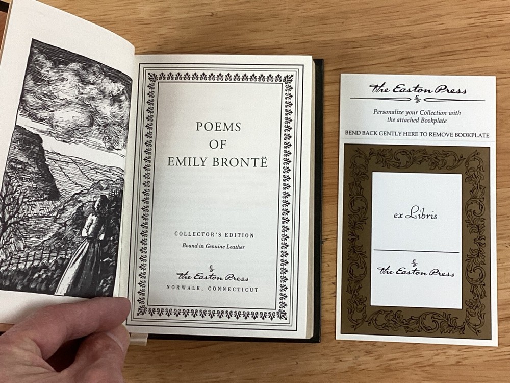 This is a Rare Emily Bronte (Mint Unread Condition), Leather Bound Easton Press Book from the Great Poets "Poetry Collection". Easton Press and Franklin Library Books are Bound in Genuine Leather and Feature: *Distinctive Cover Designs, *Hubbed Spines, Accented in Real 22KT Gold, *Silk Moire Endleaves, *Gilded Page Edges, *Permanent Satin Ribbon Page Marker, *Smyth-Sewn Pages For Strength and Durability, *Long Lasting High Quality Acid-Neutral Paper, *Beautifully Illustrated. We combine shipping . Please just let us know when you are finished with your purchases and we will send you a combined shipping invoice.