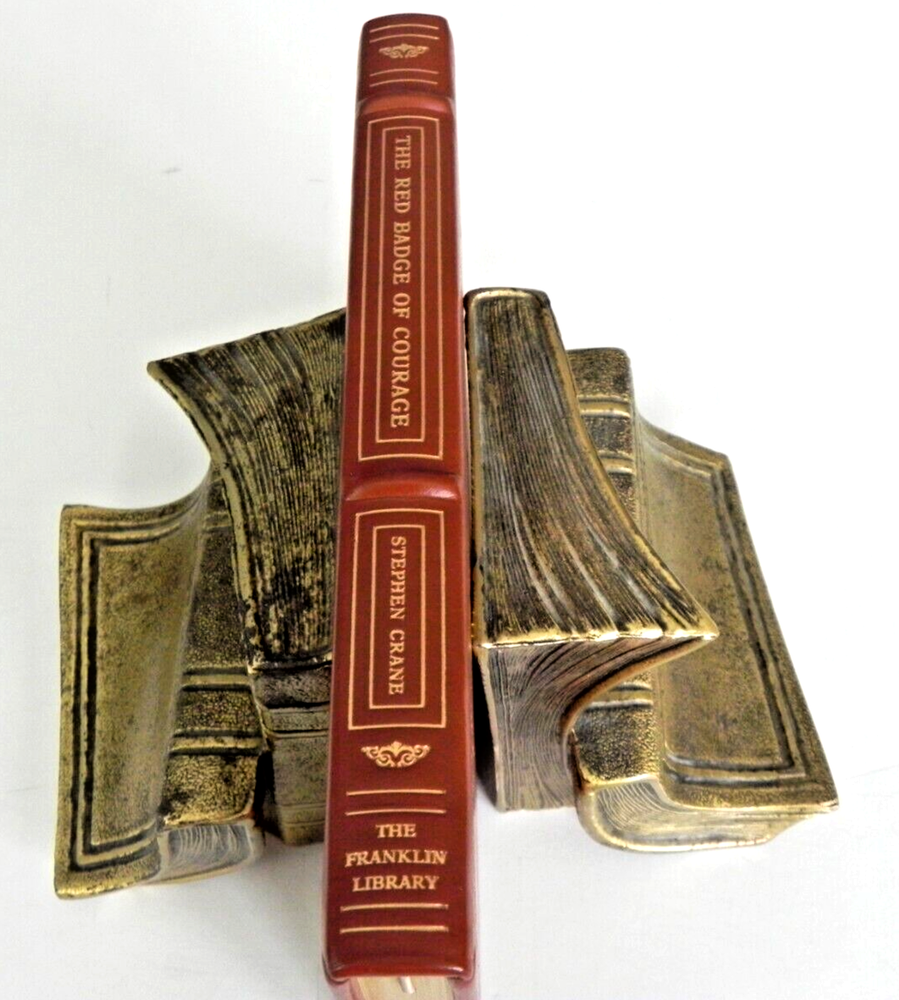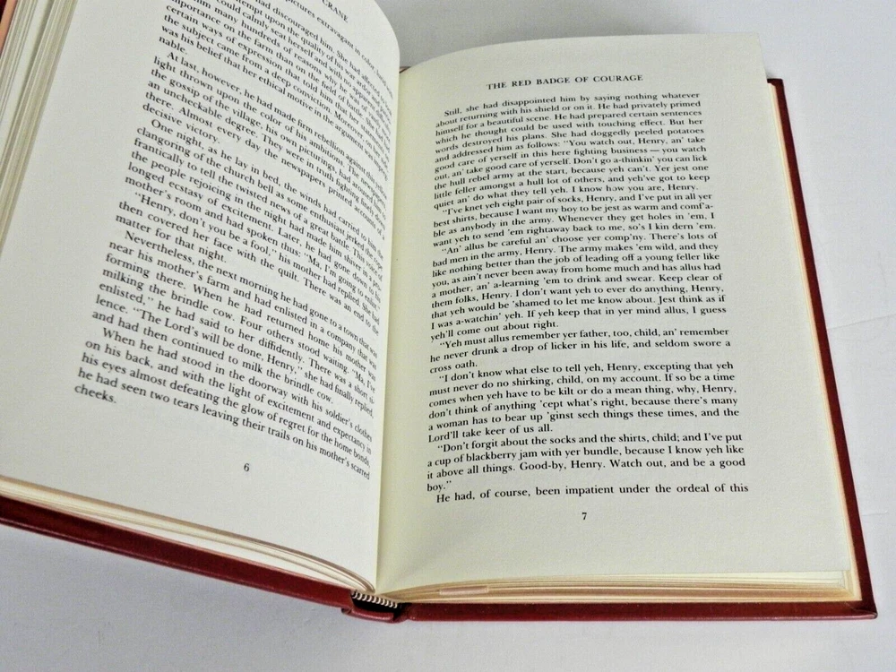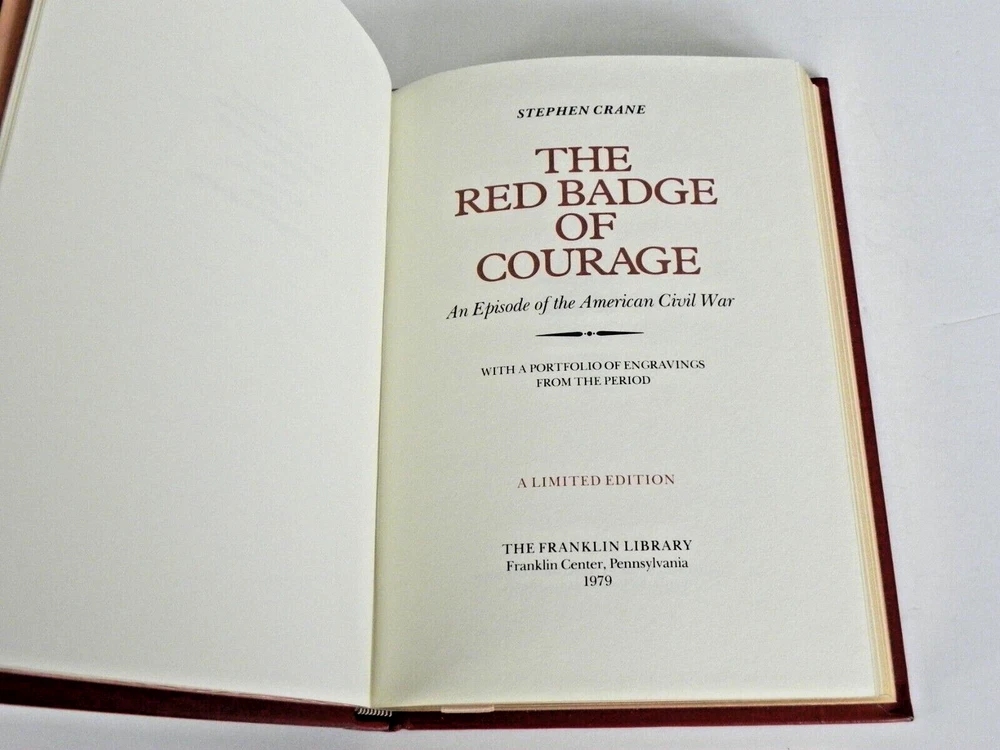 This stunning Franklin Library edition of *The Red Badge of Courage* is a true collector's gem. The genuine leather binding, moiré endpapers, and gilt edges give it a luxurious feel, while the pristine condition suggests it's practically untouched. The raised bands and ribbon bookmark add to its classic elegance—perfect for display or reading. A beautiful piece for any serious book lover!
