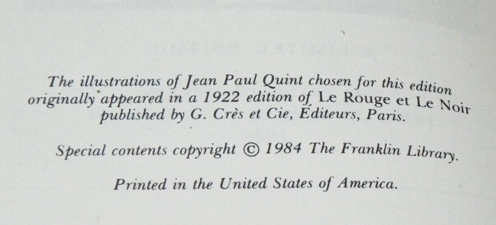 Limited Edition 1984 - Scarce Moire endpapers Genuine Leather Gilt edges on 3 sides Raised bands on spine Ribbon bookmark Please see pictures for more information and detail ***** This beautiful and scarce volume is in excellent condition. There is a minor white blemish on fore edge. This volume has the appearance of never been opened (except for pictures) or read. There are no bookplates, writings. Please see pictures for more information and detail. The bookends are not included. The issues are reflected in the price of this volume. Please feel free to contact me with any questions you might have. I will be glad to take additional pictures. I tried to describe the book through words and pictures the best I can but if you are not 100% satisfied with the purchase, please know you can return the book for full refund. Boxed and packaged VERY carefully --- Will ship within 1 business day of receiving payment. Thank you for looking! <meta name="viewport" content="width=device-width, initial-scale=1">