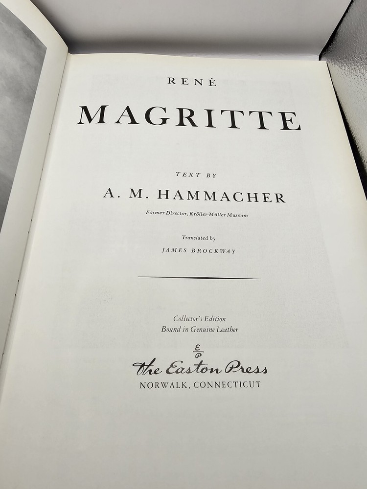 This collectors edition book features the renowned artwork of Rene Magritte and is a must-have for any art and photography enthusiast. The binding is made of high-quality leather and the book was printed in 1985 by Easton Press in New York. It is an original piece and not a facsimile. The book is written in English and has special attributes that make it a collector's edition. It is a single unit and was published in the United States. The book is not personalized and is not signed by the artist. Fine arts collections are the topic of this book, which makes it a valuable addition to any collection.