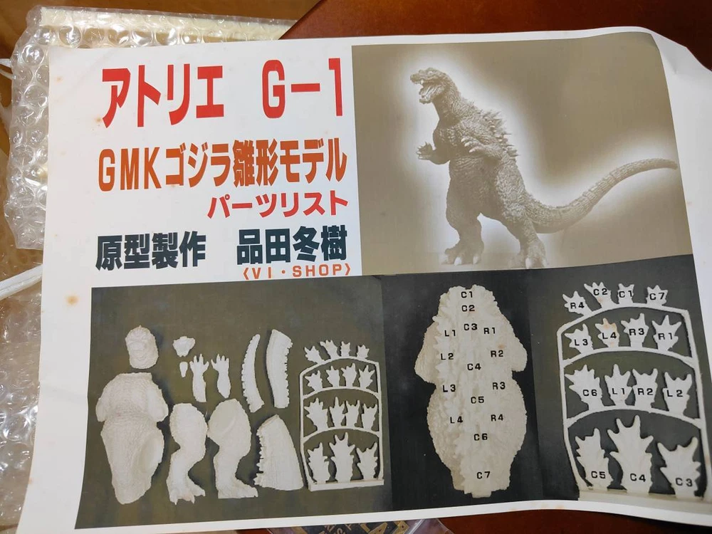 Warm greetings from Japan. Thank you very much for visiting our listing. It was released by Atelier G1. It is a GMK Godzilla cast kit. It was stored after purchase. Since it is such a huge kit, it will not fit back into the box, so please compare the size with your hand. This kit is for advanced users who need assembly & painting. Please inspect pictures for condition reference. We update our inventory every 24 hours, However, some items may sell locally in between and we may need to cancel the order. Please confirm availability before buying. CAUTION: Import TAXES (VAT),and duties are responsibility of buyers.