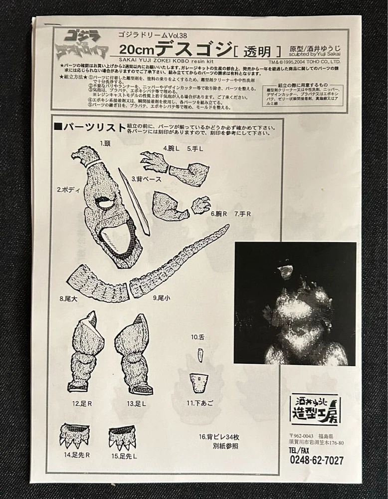 Warm greetings from Japan. Thank you very much for visiting our listing. Manufacturer: Sakai Yuji Modeling Studio. 20cm ( 7.8 inches ). Inner bag unopened. The bubble wrap has been opened for the main body, both legs, and the tail. The outer box has clear traces of the duct tape being peeled off, and there are discoloration and marks , giving it an overall old feel. The color photo of the finished product that came with it has been lost and is not available. This kit is for advanced users who need assembly & painting . Please inspect pictures for condition reference. We update our inventory every 24 hours, However, some items may sell locally in between and we may need to cancel the order. Please confirm availability before buying. CAUTION: Import TAXES (VAT),and duties are responsibility of buyers.