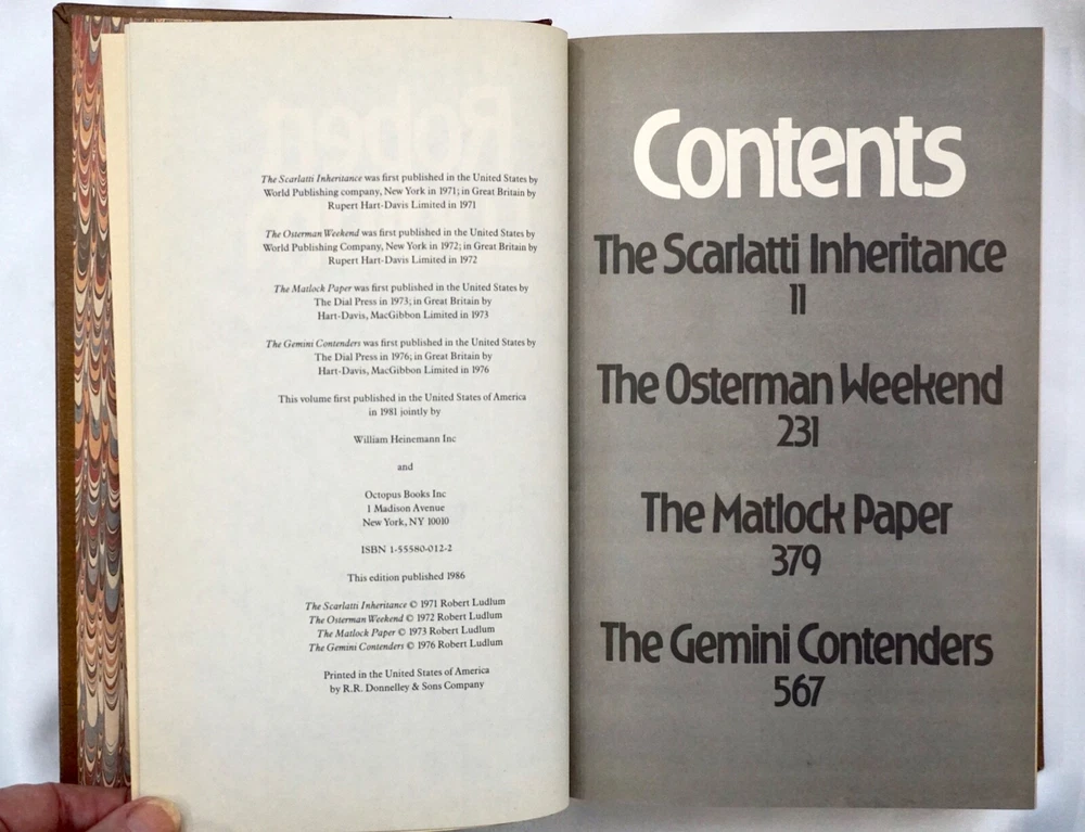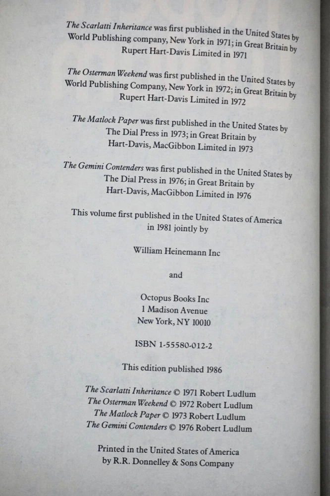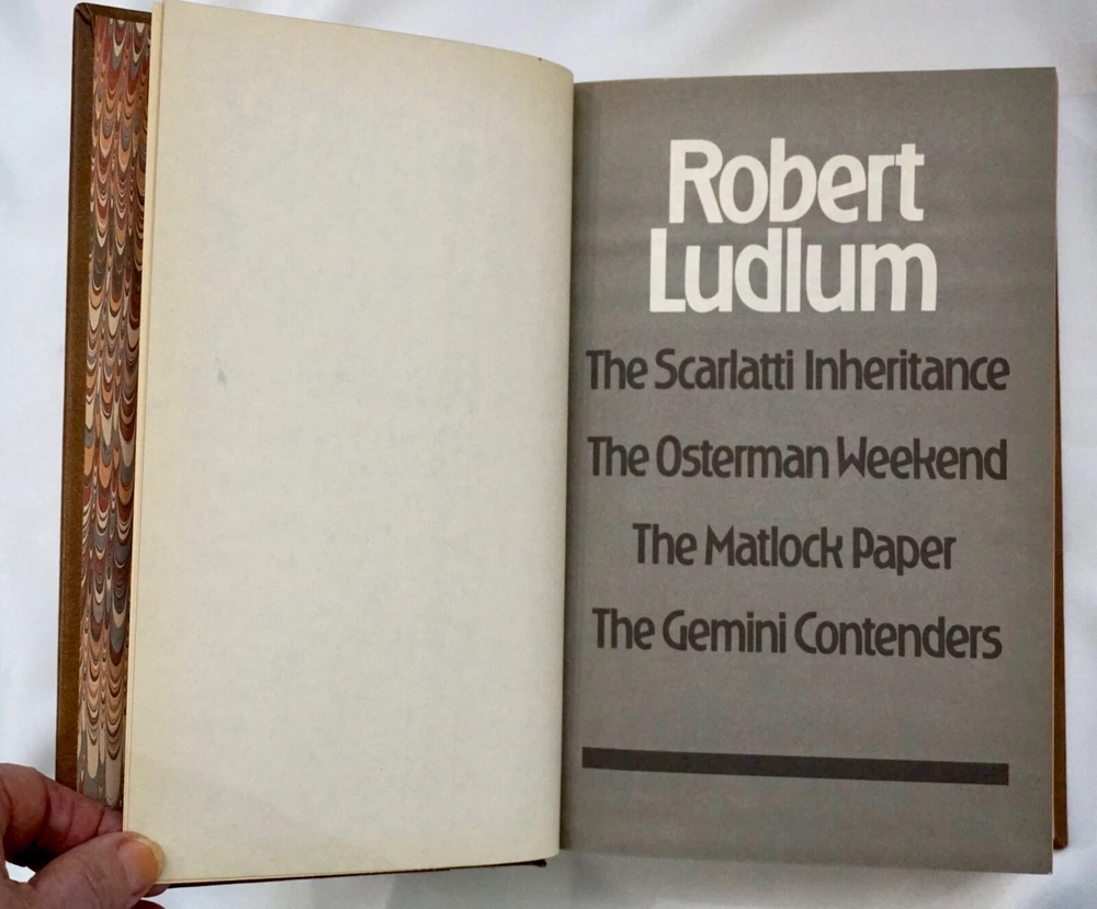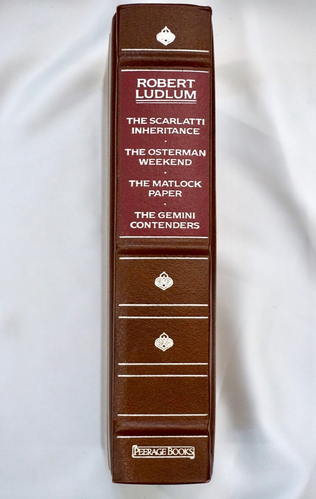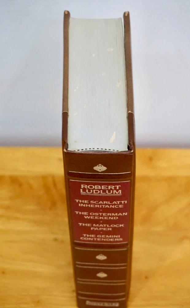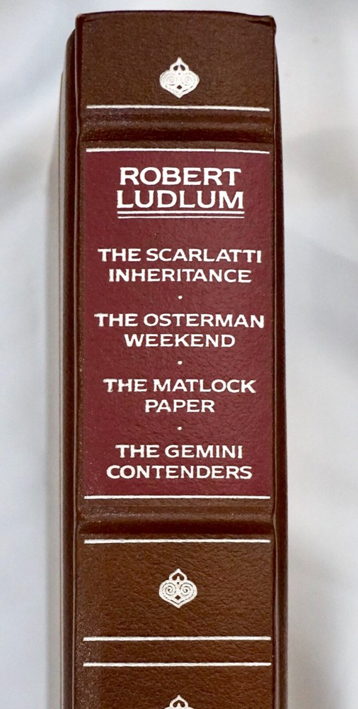Description Robert Ludlum - Masters Library : 4 Stories Hard Cover Leather Bound 1986 Amaranth Press - Octopus - Bonded Red Leather & Gold Leaf on Page Ends Like New - Bought as a collector's piece and kept carefully on the bookshelf! Never read! Books: The Scarlatti Inheritance The Osterman Weekend The Matlock Paper The Gemini Contenders More high quality items are listed daily, so be sure to bookmark our store and check back often! Terms of Sale All defects (if any) are noted Please keep in mind that all monitors display colors differently Final sale I will respond to all inquiries with a prompt and specific answer. Positive feedback is always appreciated, as it lets me know that you have received the item and the transaction was completed successfully! If there is a problem, please contact me before leaving feedback. I will work very hard to resolve all issues. Shipping I ship all my items by USPS or UPS with delivery confirmation and ship immediately after a cleared payment. Contact Us I want you to be happy with your purchase! Please contact us via the eBay email link if you have any questions.