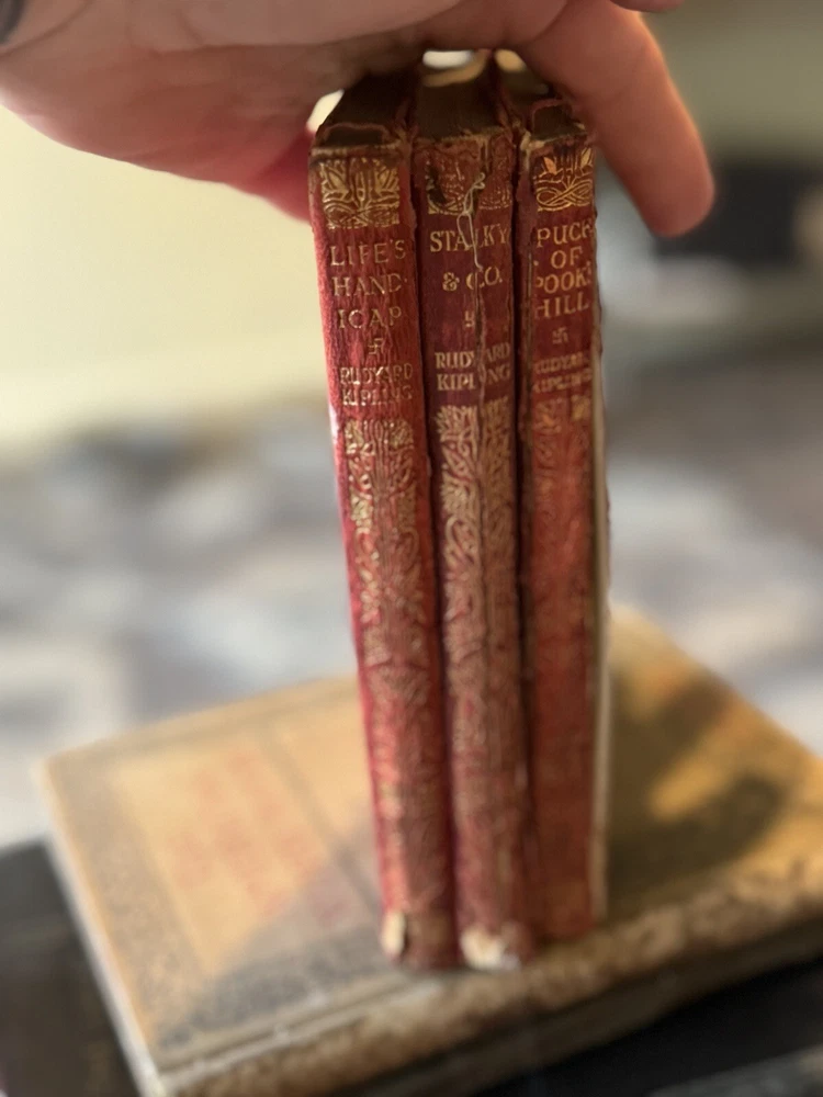 This vintage Rudyard Kipling set is a treasure for classic literature lovers! The three-book collection includes "Stalky & Co," "Puck of Pook's Hill," and "Life's Handicap," showcasing Kipling's brilliant storytelling. Printed in 1924-25 by Macmillan, these editions hold historical significance, published before the swastika's later association. Perfect for collectors and readers who appreciate early 20th-century literature with rich cultural depth. The binding feels sturdy, and the pages have aged beautifully—great for gifting or personal enjoyment. Excited to dive into these timeless tales!