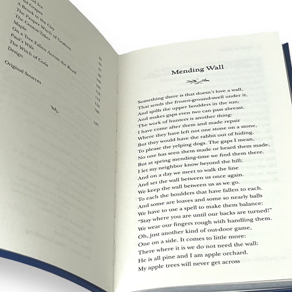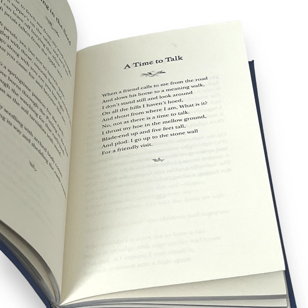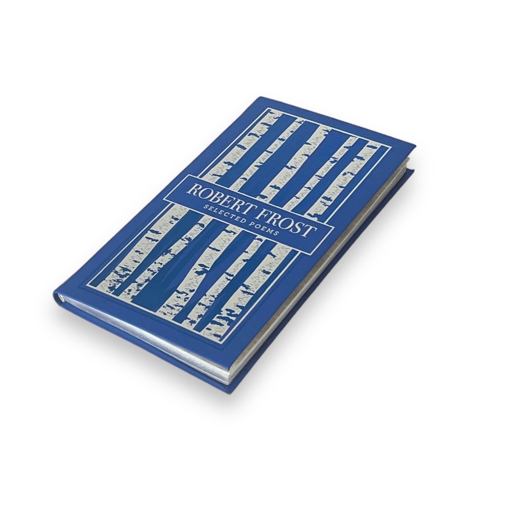 DELUXE EDITION! Featuring a beautifully stamped bounded leather cover, gilt edging, colorful endpapers, this collectible edition is a fine addition to any home library. In his poetry, Robert Frost made plainspoken men and women eloquent philosophers on the human condition. Selected Poems is a unique collection of 37 poems by this well-known twentieth-century American poet. Its contents include such beloved poems as "Mending Wall," "The Road Not Taken," and "The Death of the Hired Man." Dimensions - 4.3 H x 7.1 W x 0.5 D