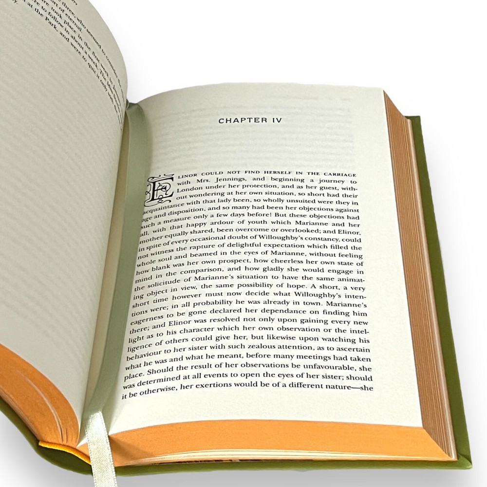 This volume is one of Collectible Editions classics features authoritative text in an exquisitely designed foil-stamped binding, with distinctive colored edging and an attractive ribbon bookmark. When the Dashwood family estate passes to the eldest son John and his wife, Mrs. Dashwood and her daughters Elinor, Marianne, and Margaret must find a new home. Moving to a cottage in Devonshire, the Dashwood women begin adjusting to a new life and a new social circle. Soon, Elinor is being courted by the gentlemanly Edward Ferrars, and Marianne finds herself torn between two suitors, the brooding Colonel Brandon and social-climbing scoundrel John Willoughby. The love and heartbreaks that they all endure are shaped by the temperament of their time and place and the sense and sensibility of their society. Page Count - 344 Leather Editions Product Dimensions - 5.6 H x 8.3 W x 1.4 D
