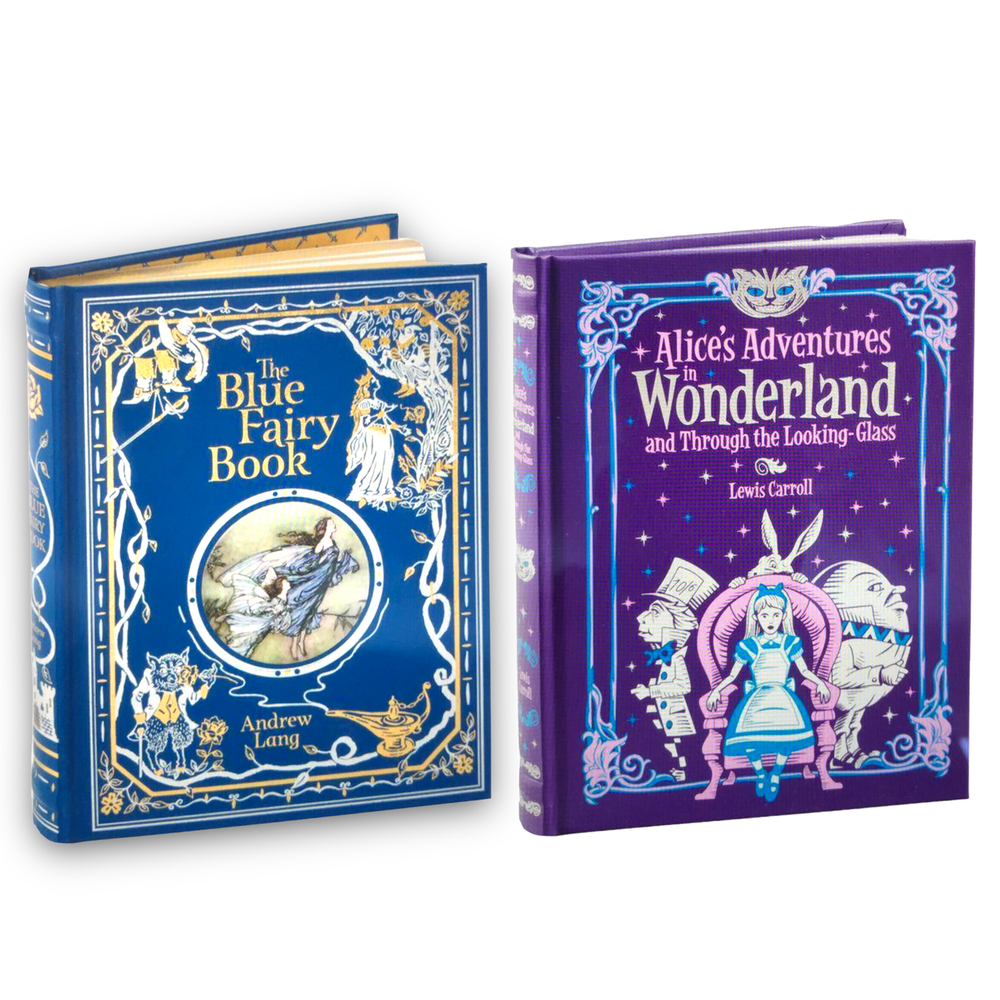 SET of 2 - ALICE'S ADVENTURES in WONDERLAND and THE BLUE FAIRY Leather Bound NEW 1. Alice's Adventures in Wonderland and Through the Looking Glass (Collectible Editions) by Lewis Carroll Lewis Carroll's novels Alice's Adventures in Wonderland and Through the Looking-Glass (first published in 1865 and 1871, respectively) have entertained readers young and old for more than a century. Their magical worlds, amusing characters, clever dialogue and playfully logical illogic epitomize the wit and whimsy of Carroll's writing. Alice's Adventures in Wonderland transports you down the rabbit-hole into a wondrous realm that is home to a White Rabbit, a March Hare, a Mad Hatter, a tea-drinking Dormouse, a grinning Cheshire-Cat, the Queen of Hearts and her playing-card retainers and all manner of marvelous creatures. Through the Looking-Glass is your passport to a topsy-turvy world on the other side of the mirror, where you have to run fast just to stay in place, memory works backwards and it is possible to believe as many as six impossible things before breakfast. Both stories feature the classic illustrations of John Tenniel in full color. Alice's Adventures in Wonderland and Through the Looking-Glass is one of Barnes & Noble's Collectible Editions classics for children. It features classic illustrations, an elegant bonded-leather binding, a ribbon bookmark and distinctive gilt edging. It will provide hours of enjoyment for readers of all ages. Author - Lewis Carroll Publisher - Barnes & Noble Publication date - 07-03-2015 Page count - 296 Hardcover Age range - 10-14 years Leather Editions Dimensions - 6.4 H x 8.3 W x 1 D ISBN-13 - 9781435160736 2. The Blue Fairy Book (Collectible Editions) by Andrew Lang Originally published in 1889, The Blue Fairy Book was the first of 12 volumes of fairy tales from around the world, collected by renowned folklorist Andrew Lang. For more than a century it has been the book that introduces young readers to timeless fairy tales that include "Hansel and Gretel," "Aladdin and the Wonderful Lamp," "Beauty and the Beast," "The Master Cat; or, Puss in Boots," "The Forty Thieves" and "Snow-White and Rose-Red." This collection of selected fairy tales features the distinguished art of Henry J. Ford and G. P. Jacomb Hood, which graced the book's first edition. The Blue Fairy Book is one of Barnes & Noble's Collectible Editions classics for children. It features classic illustrations, an elegant bonded-leather binding, distinctive gilt edging and a ribbon bookmark. Decorative, durable and collectible, these books offer hours of pleasure to readers young and old and are an indispensable cornerstone for any home library. Author - Andrew Lang Publisher - Barnes & Noble Publication date - 05-29-2017 Page count - 440 Hardcover Age range - 10-13 years Leather Editions Dimensions - 6.4 H x 8.3 W x 1.1 D ISBN-13 - 9781435162174