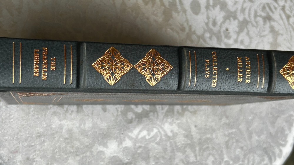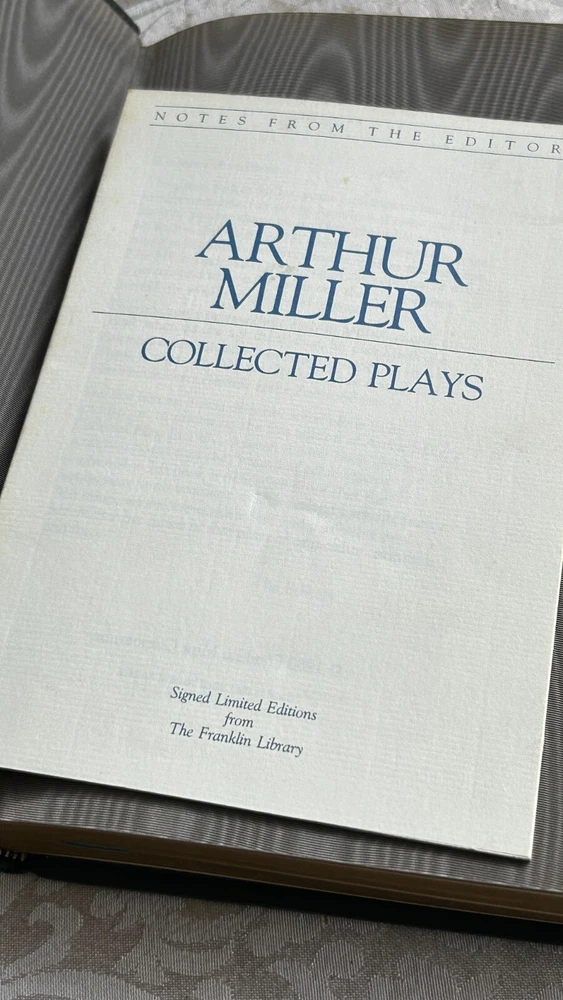 SIGNED - Arthur Miller's Collected Plays Leather Bound Franklin Library 1980 NEW This is a leather-bound collector's edition of Arthur Miller's collected plays, published by Franklin Library in 1980. The book is signed by the author and includes illustrations by Barron Storey. It is a limited edition and is considered a rare and valuable item for collectors of literature and modern plays.