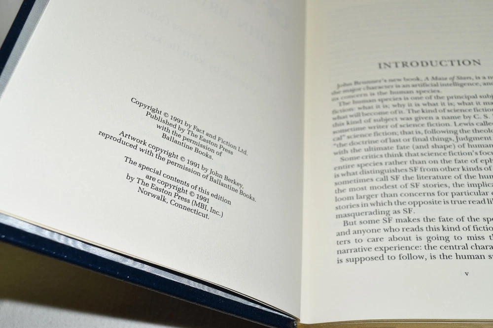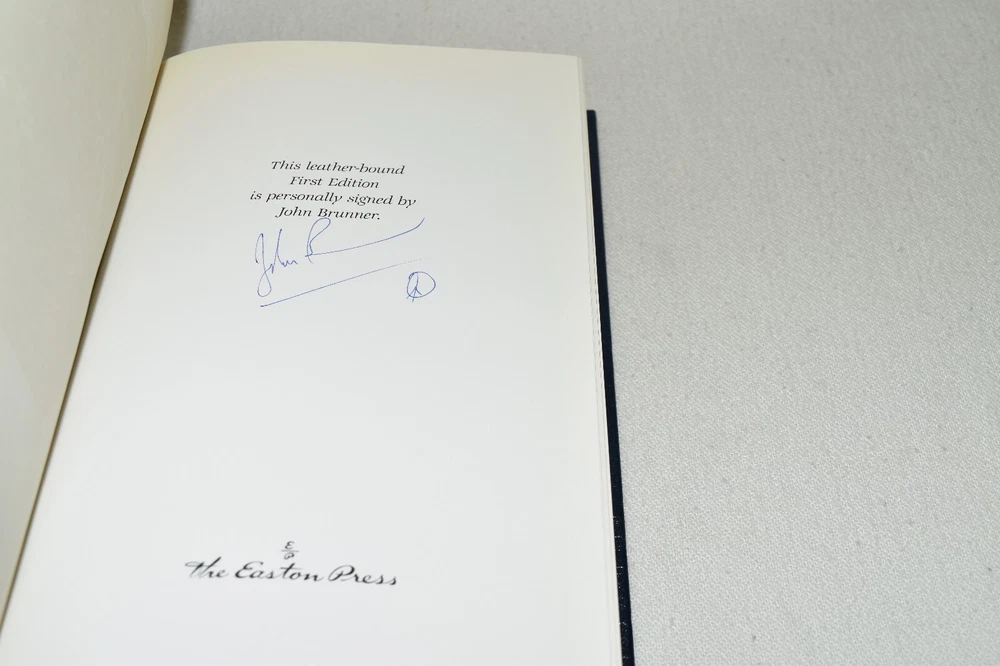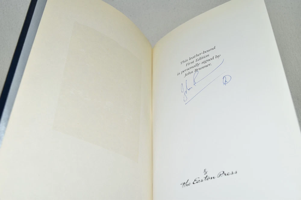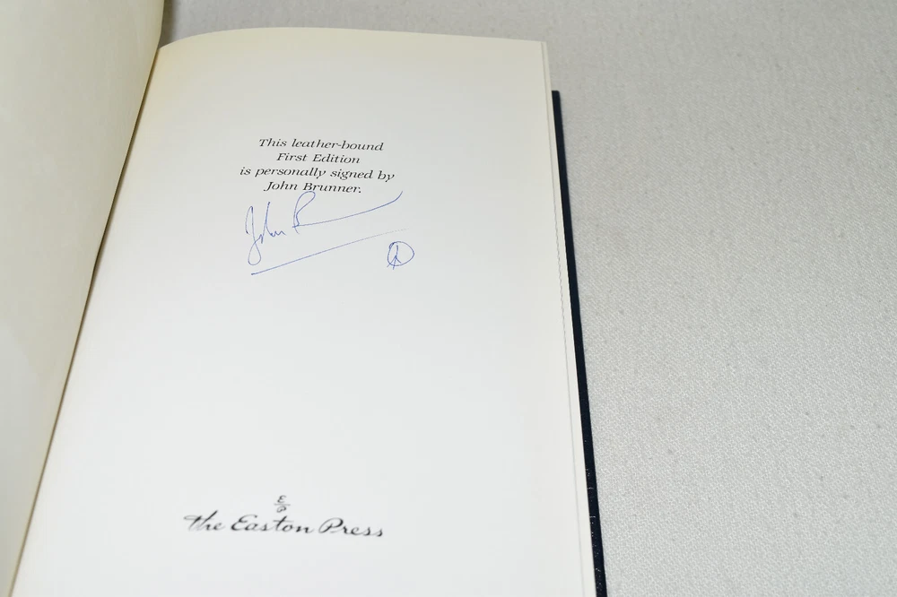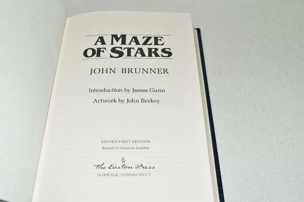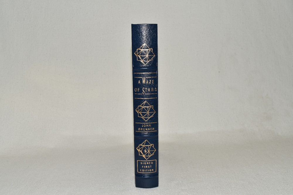 From the Easton Press Signed Collection... A Maze of Stars PERSONALLY SIGNED by John Brunner Introduction by James Gunn Illustrated by John Berkey Easton Press Signed Edition Copyright 1991 by The Easton Press Bound in Premium Full Leather This Signed Edition contains all of the classic Easton Press trimmings: Premium Leather Silk Moire Endleaves Distinctive Cover Design Hubbed Spine, Accented in Real 22KT Gold Satin Ribbon Page Marker Gilded Page Edges Long-lasting, High Quality Acid-neutral Paper Smyth-sewn Pages for Strength and Durability A very scarce title in any condition, this copy is in Fine condition. The front and back covers are both in near perfect condition and the gilded page edges show hardly any wear (see pictures of all sides). There is light residue on the second page. This book is personally signed by the Author and would be a beautiful addition to your Easton Press collection. Hopefully you can add this book to your collection and enjoy it in the years to come... Please Email Me With Any Questions You Might Have! Shipping Info: Buyer to Pay Shipping and Handling International Bidders Pay Extra Shipping Seller Not Responsible For Uninsured Items Lost or Damaged in Mail Forms of Payment Accepted: Paypal Good luck and happy bidding! Powered by eBay Turbo Lister The free listing tool. List your items fast and easy and manage your active items.