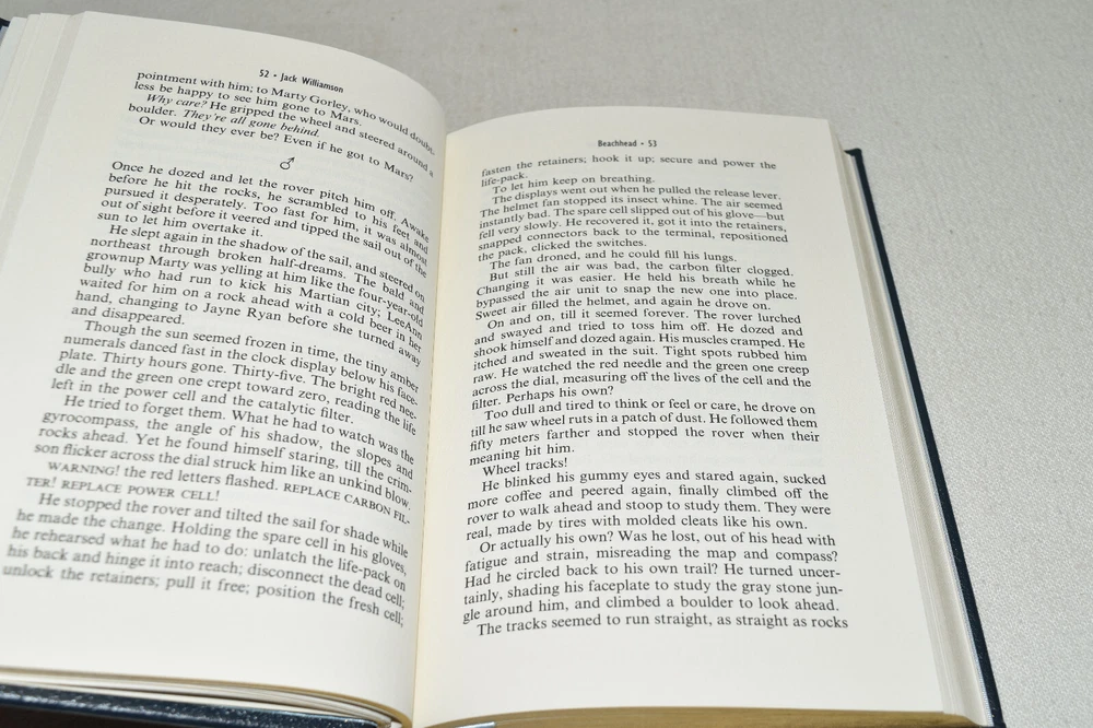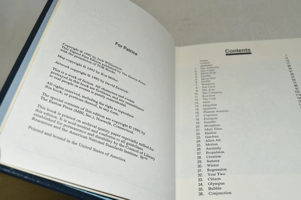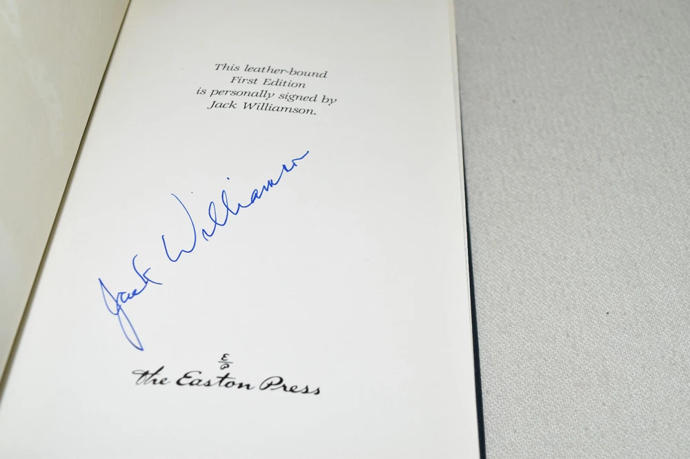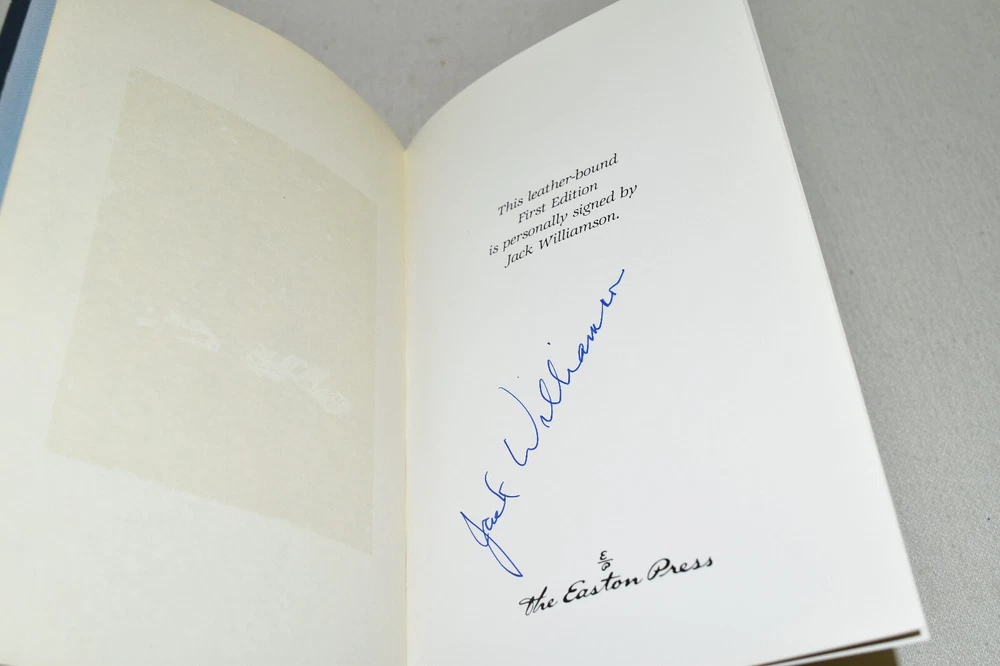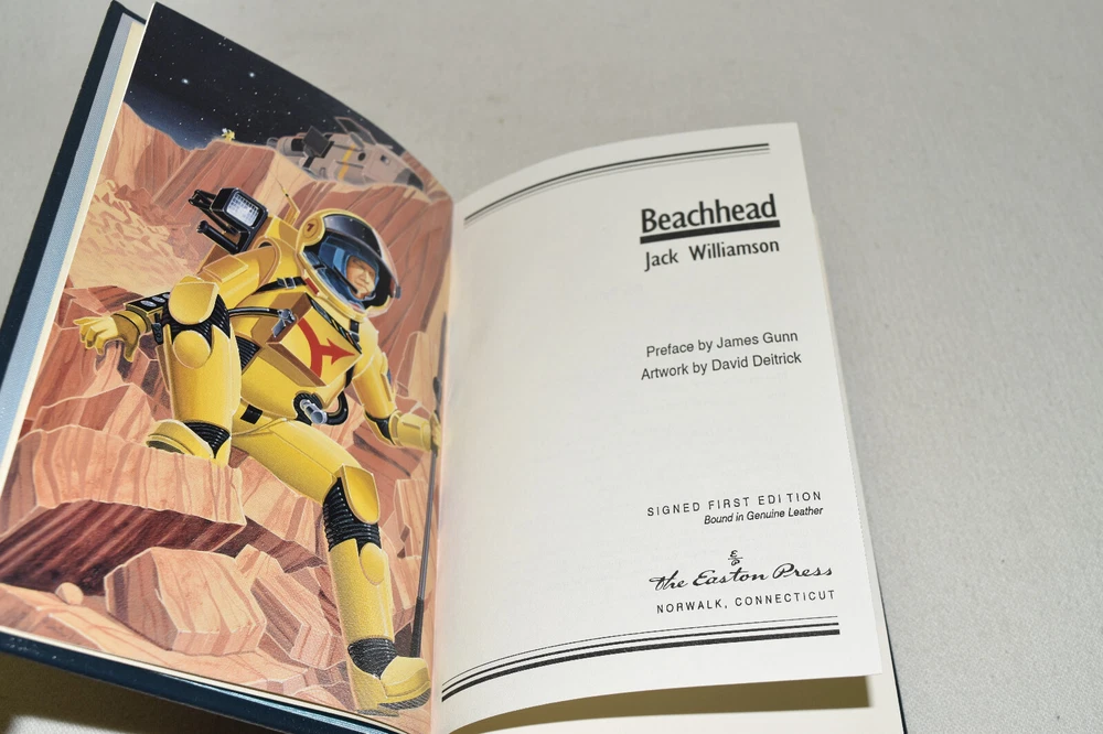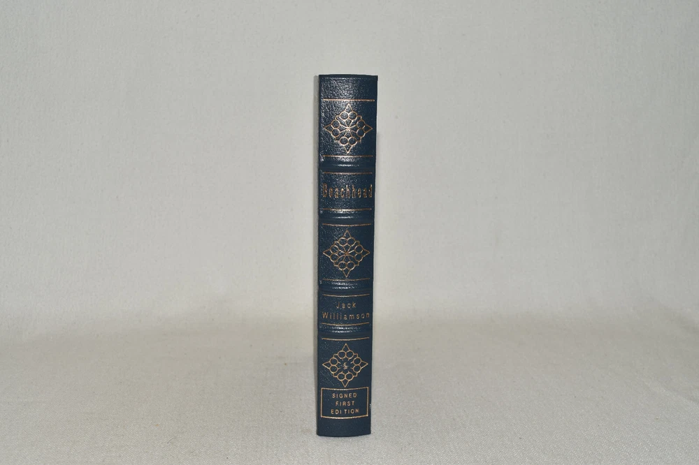 From the Easton Press Signed Collection... Beachhead PERSONALLY SIGNED by Jack Williamson Introduction by James Gunn Illustrated by David Deitrick Easton Press Signed Edition Copyright 1992 by The Easton Press Bound in Premium Full Leather This Signed Edition contains all of the classic Easton Press trimmings: Premium Leather Silk Moire Endleaves Distinctive Cover Design Hubbed Spine, Accented in Real 22KT Gold Satin Ribbon Page Marker Gilded Page Edges Long-lasting, High Quality Acid-neutral Paper Smyth-sewn Pages for Strength and Durability A very scarce title in any condition, this copy is in Fine condition. The front and back covers are both in terrific condition and the gilded page edges show only minor wear (see pictures of all sides). There is light residue on the second page. This book is personally signed by the Author and would be a beautiful addition to your Easton Press collection. Hopefully you can add this book to your collection and enjoy it in the years to come... Please Email Me With Any Questions You Might Have! Shipping Info: Buyer to Pay Shipping and Handling International Bidders Pay Extra Shipping Seller Not Responsible For Uninsured Items Lost or Damaged in Mail Forms of Payment Accepted: Paypal Good luck and happy bidding! Powered by eBay Turbo Lister The free listing tool. List your items fast and easy and manage your active items.