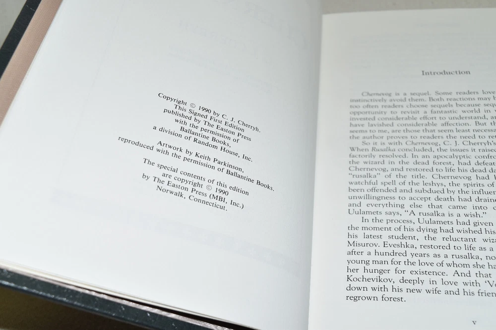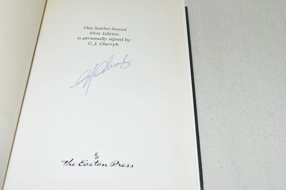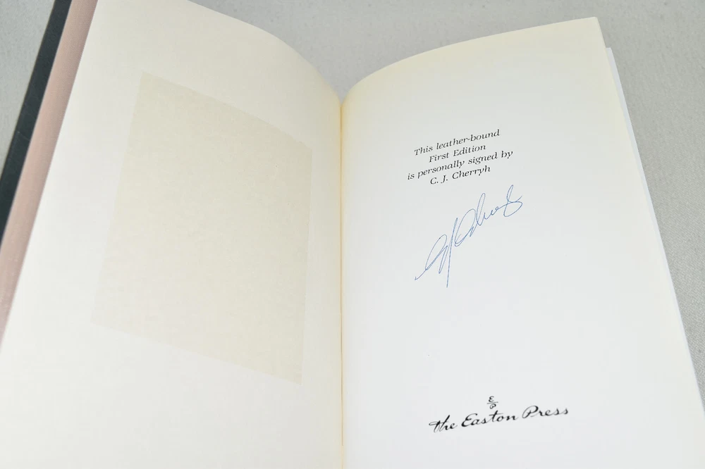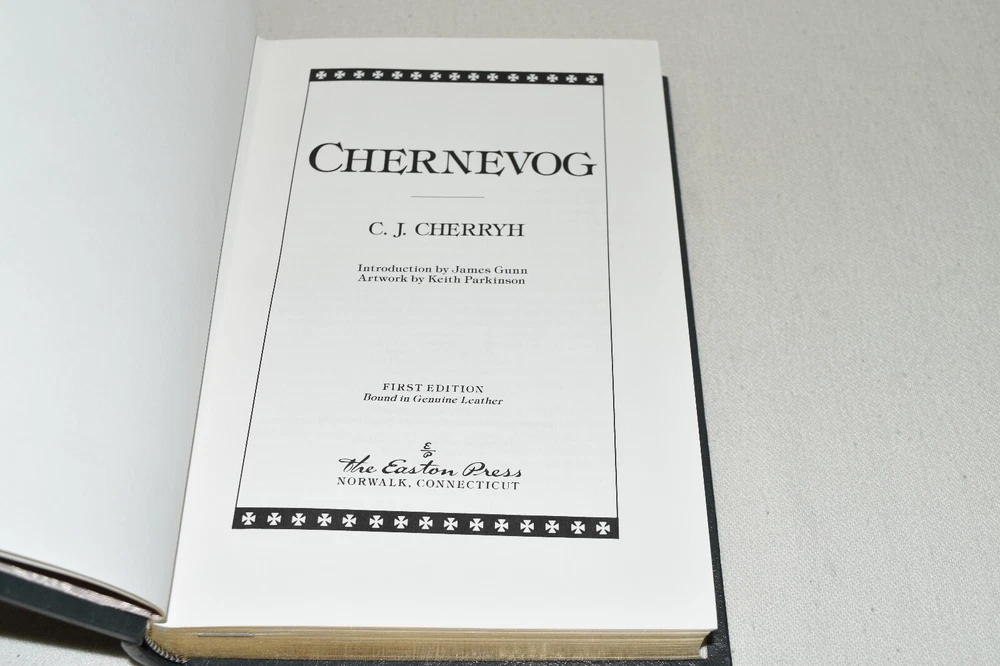 From the Easton Press Signed Collection... Chernevog PERSONALLY SIGNED by Author C. J. Cherryh Introduction by James Gunn Frontispiece by Keith Parkinson Easton Press Signed Edition Copyright 1990 by The Easton Press Bound in Premium Full Leather This Signed Edition contains all of the classic Easton Press trimmings: Premium Leather Silk Moire Endleaves Distinctive Cover Design Hubbed Spine, Accented in Real 22KT Gold Satin Ribbon Page Marker Gilded Page Edges Long-lasting, High Quality Acid-neutral Paper Smyth-sewn Pages for Strength and Durability A very scarce title in any condition, this copy is in Fine condition. The front and back covers are both in terrific condition and the gilded page edges show only faint wear (see pictures of all sides). There is a light residue on the second page. This book is personally signed by the Author and would be a beautiful addition to your Easton Press collection. Hopefully you can add this book to your collection and enjoy it in the years to come... Please Email Me With Any Questions You Might Have! Shipping Info: Buyer to Pay Shipping and Handling International Bidders Pay Extra Shipping Seller Not Responsible For Uninsured Items Lost or Damaged in Mail Forms of Payment Accepted: Paypal Good luck and happy bidding! Powered by eBay Turbo Lister The free listing tool. List your items fast and easy and manage your active items.