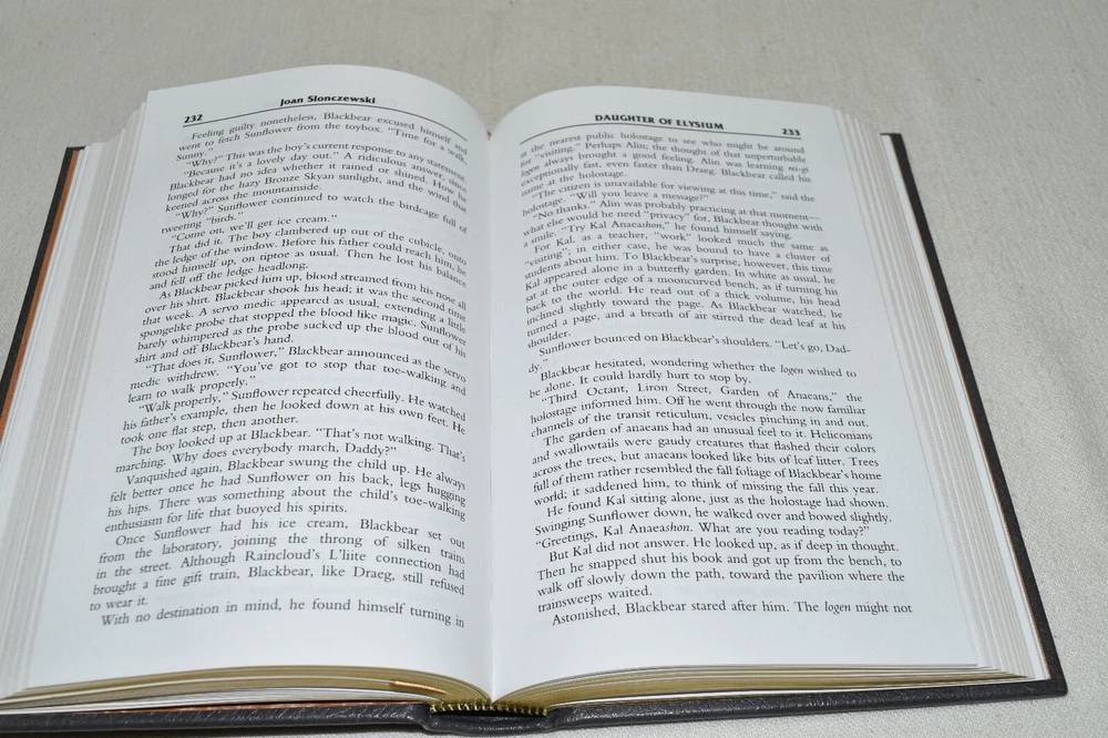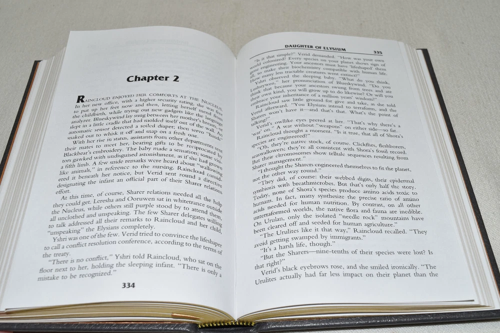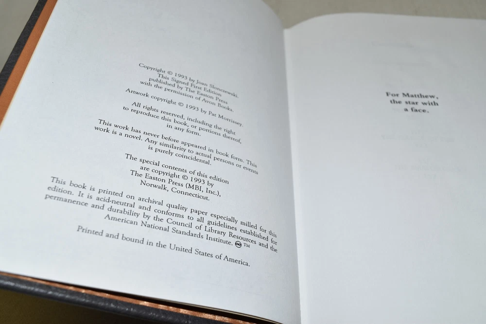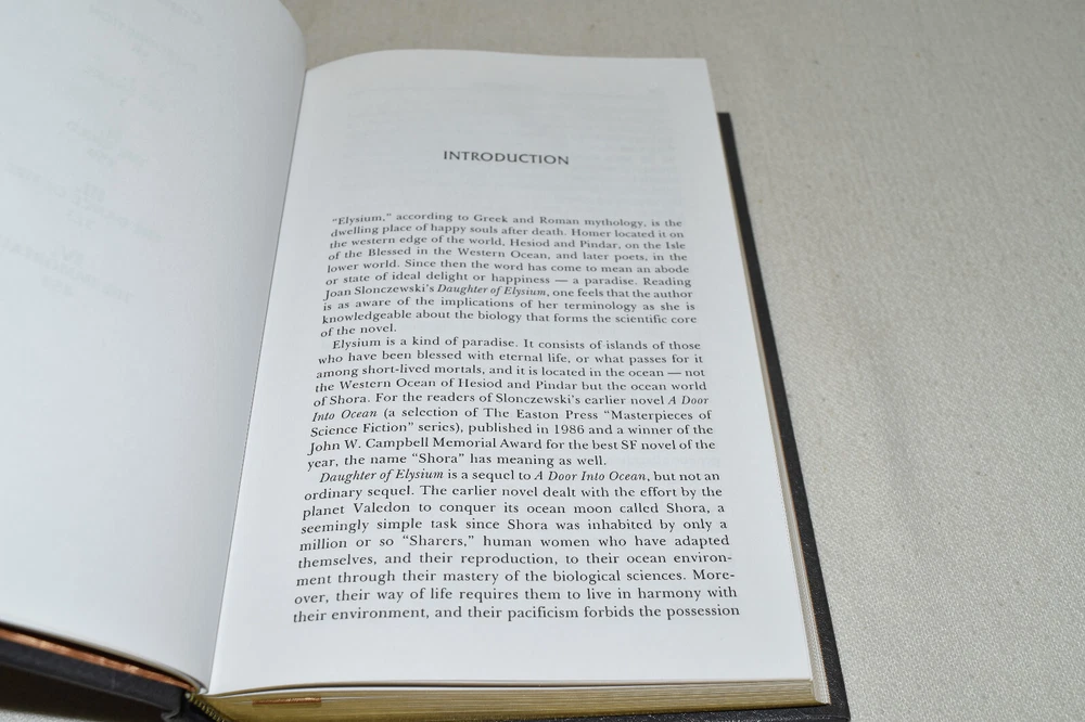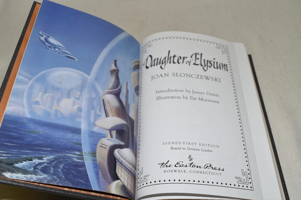 From the Easton Press Signed First Edition Collection... Daughter of Elysium by Joan Slonczewski Illustrated by Pat Morrissey Introduction by James Gunn Collector's Edition Copyright 1993 by The Easton Press Bound in Premium Full Leather This volume contains all of the classic Easton Press trimmings: Premium Leather Silk Moire Endleaves Distinctive Cover Design Hubbed Spine, Accented in Real 22KT Gold Satin Ribbon Page Marker Gilded Page Edges Long-lasting, High Quality Acid-neutral Paper Smyth-sewn Pages for Strength and Durability Beautiful Illustrations A very scarce title in any condition, this 1993 Easton Press Signed First Edition is in Fine condition! The front and back covers are both in terrific condition and the gilded page edges show hardly any wear (see pictures of all sides of gilt). There is a blank bookplate affixed on the second page. This book is part of the Signed First Editions Collection published by Easton Press. It is Personally Signed by The Author and would be a beautiful addition to your Easton Press collection. Please Email Me With Any Questions You Might Have! Shipping Info: Buyer to Pay Shipping and Handling International Bidders Pay Extra Shipping Seller Not Responsible For Uninsured Items Lost or Damaged in Mail Forms of Payment Accepted: Paypal Good luck and happy bidding! Powered by eBay Turbo Lister The free listing tool. List your items fast and easy and manage your active items.
