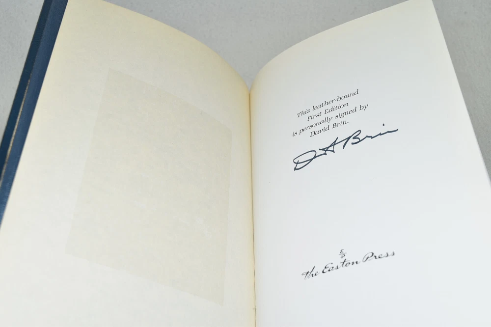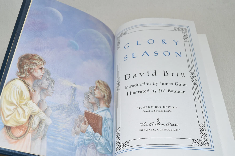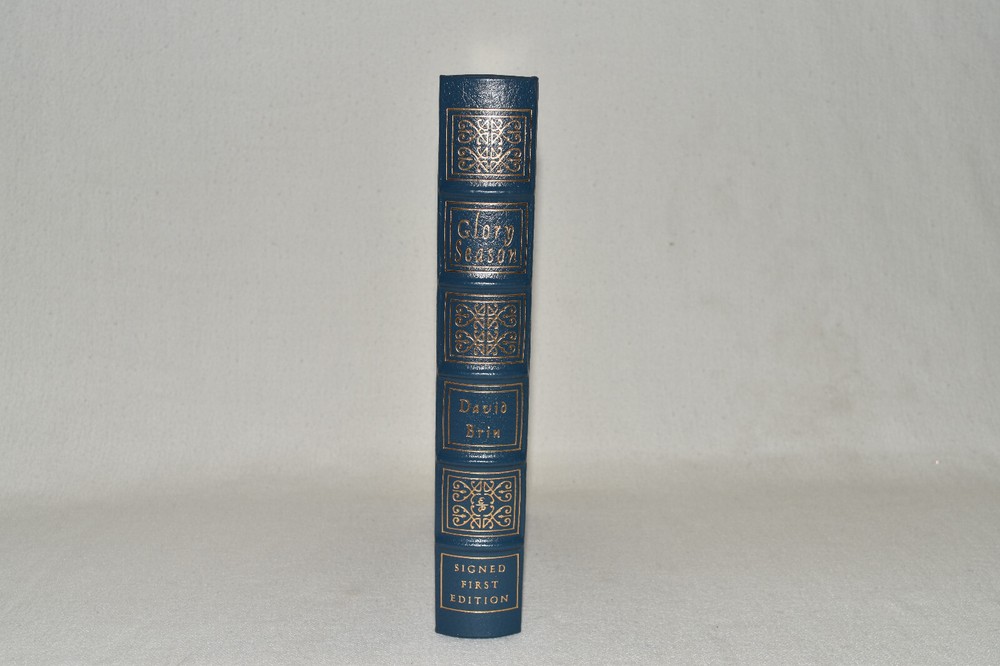 From the Easton Press Signed Collection... Glory Season PERSONALLY SIGNED by David Brin Introduction by James Gunn Illustrated by Jill Bauman Easton Press Signed Edition Copyright 1993 by The Easton Press Bound in Premium Full Leather This Signed Edition contains all of the classic Easton Press trimmings: Premium Leather Silk Moire Endleaves Distinctive Cover Design Hubbed Spine, Accented in Real 22KT Gold Satin Ribbon Page Marker Gilded Page Edges Long-lasting, High Quality Acid-neutral Paper Smyth-sewn Pages for Strength and Durability A very scarce title in any condition, this copy is in Fine condition. The front and back covers are both in near perfect condition and the gilded page edges show minor wear on the side edge (see pictures of all sides). There is light residue on the second page. This book is personally signed by the Author and would be a beautiful addition to your Easton Press collection. Hopefully you can add this book to your collection and enjoy it in the years to come... Please Email Me With Any Questions You Might Have! Shipping Info: Buyer to Pay Shipping and Handling International Bidders Pay Extra Shipping Seller Not Responsible For Uninsured Items Lost or Damaged in Mail Forms of Payment Accepted: Paypal Good luck and happy bidding! Powered by eBay Turbo Lister The free listing tool. List your items fast and easy and manage your active items.
