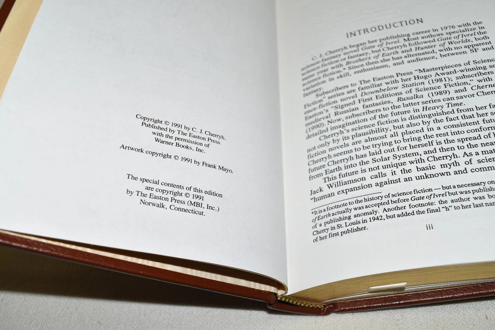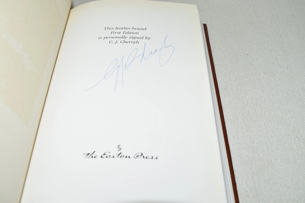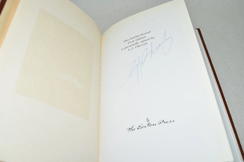 From the Easton Press Signed Collection... Heavy Time PERSONALLY SIGNED by Author C. J. Cherryh Introduction by James Gunn Frontispiece by Frank Mayo Easton Press Signed Edition Copyright 1991 by The Easton Press Bound in Premium Full Leather This Signed Edition contains all of the classic Easton Press trimmings: Premium Leather Silk Moire Endleaves Distinctive Cover Design Hubbed Spine, Accented in Real 22KT Gold Satin Ribbon Page Marker Gilded Page Edges Long-lasting, High Quality Acid-neutral Paper Smyth-sewn Pages for Strength and Durability A very scarce title in any condition, this copy is in Fine condition. The front and back covers are both in terrific condition and the gilded page edges show only faint wear (see pictures of all sides). There is light residue on the second page. This book is personally signed by the Author and would be a beautiful addition to your Easton Press collection. Hopefully you can add this book to your collection and enjoy it in the years to come... Please Email Me With Any Questions You Might Have! Shipping Info: Buyer to Pay Shipping and Handling International Bidders Pay Extra Shipping Seller Not Responsible For Uninsured Items Lost or Damaged in Mail Forms of Payment Accepted: Paypal Good luck and happy bidding! Powered by eBay Turbo Lister The free listing tool. List your items fast and easy and manage your active items.